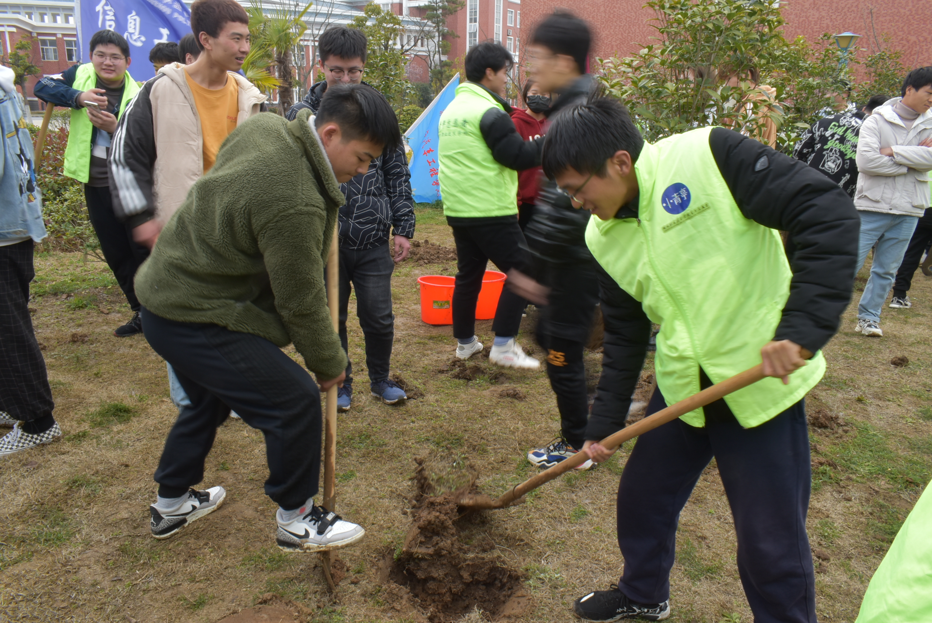 阳春三月,草长莺飞,在第45个植树节来临之际,3月10日下午,食环学院团总支“萤火虫”志愿服务队积极响应校团委的号召,组织师生参加“拥抱春天,播种绿色”义务植树活动。