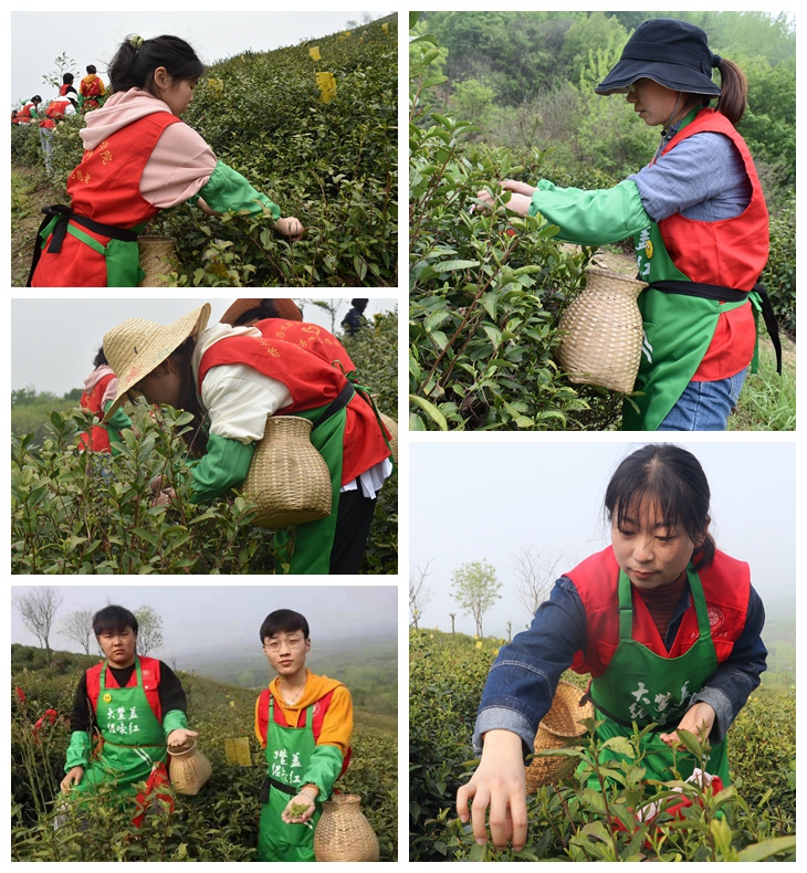 4月13日,食环学院团总支负责人李瑞瑞和园林园艺系涂清芳副教授带领14名青年志愿者走进滁州市施集镇大鳖盖有机茶园,开展劳动实践课暨助农采茶志愿服务活动。