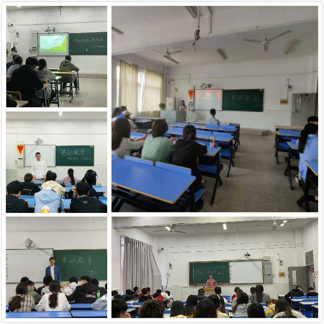 各班辅导员从五一劳动节的起源、幸福都是奋斗出来的、弘扬劳模精神等方面出发,围绕劳动和教育的关系对同学们展开了劳动教育。同时,辅导员对我院的劳动课程安排、培养目标和任务等进行了详细介绍,要求同学们树立正确的劳动观,上好每一节劳动教育课,在劳动中磨砺意志、锻造品格。会上,辅导员还组织同学们进行了劳动课分享。