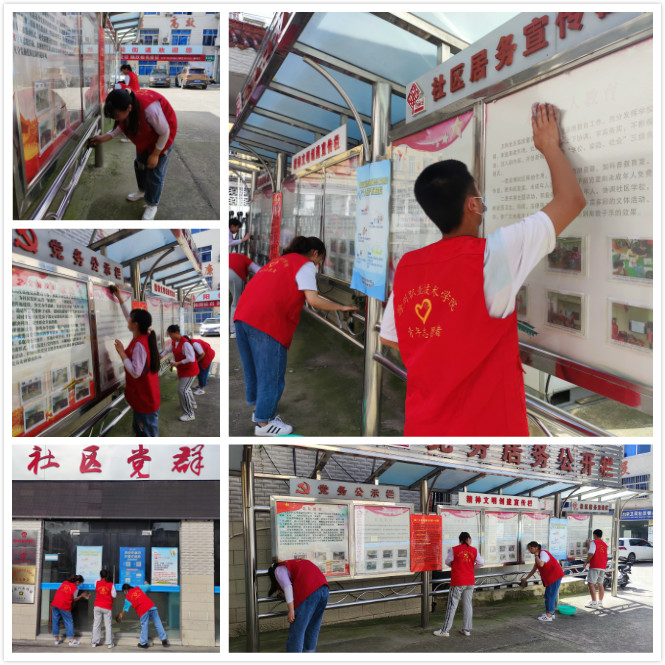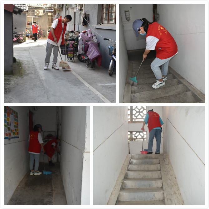 下午三时,骄阳似火、热浪袭人。食环学院12名党员志愿者不惧炎热,在卫民社区工作人员的带领下对居民楼道进行卫生清理,对小区电动车、自行车停放进行整理,对公共宣传栏进行认真的清洁和清理。经过大家一个多小时的辛勤劳动,社区环境更加清洁、有序,志愿者们认真、负责的态度赢得了社区工作人员和群众的一致好评。