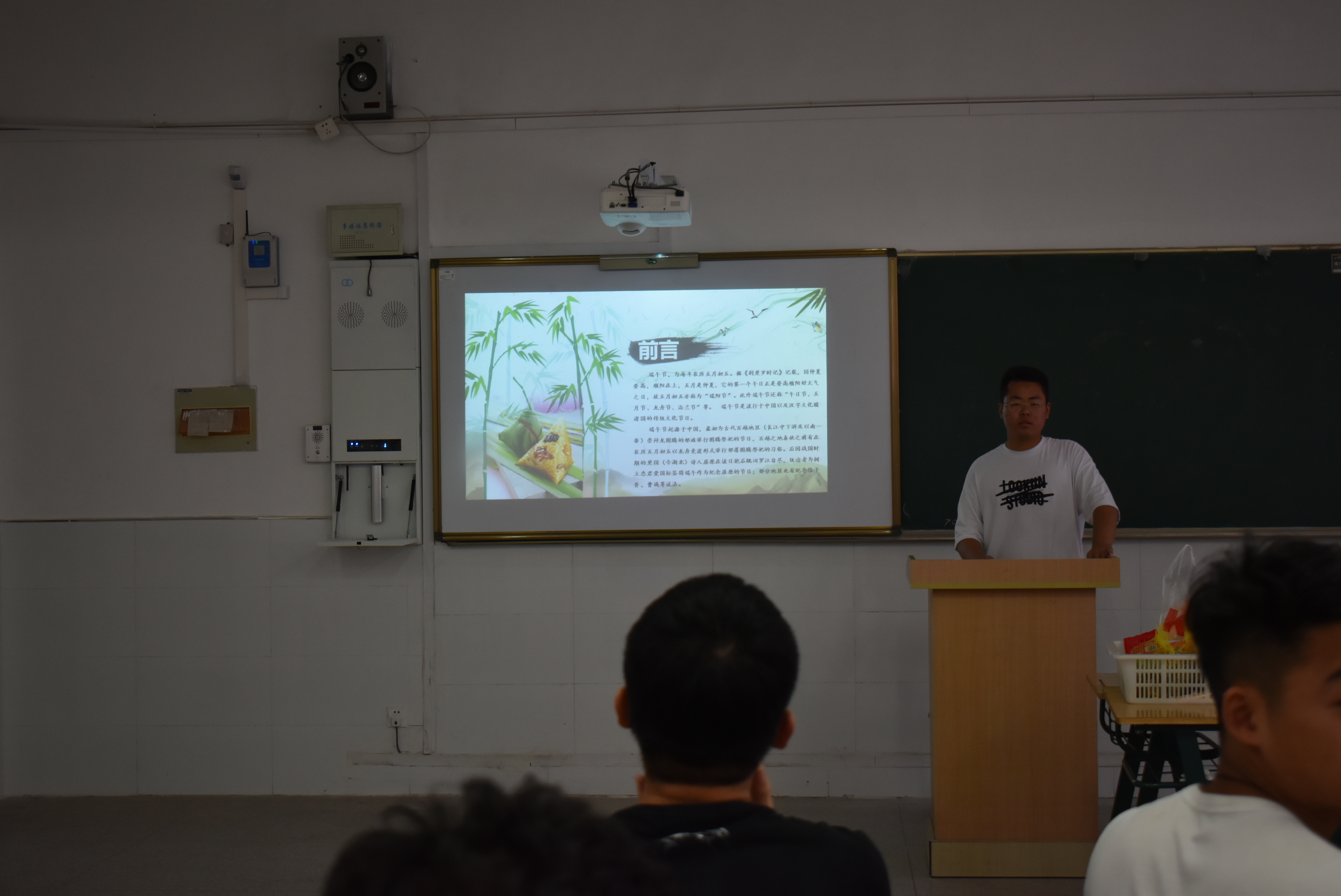 6月11日中午,食环学院团总支学生会在致善楼2303教室开展“粽叶飘香迎端午 传统文化共传承”主题团日活动。活动开始,大家观看了小短片《必过端午节的一百个理由》,短片以诙谐的口吻向大家介绍了端午节的由来、屈原的生平等。借着短片塑造的氛围,有关端午节和中国共产党历史的知识竞答拉开帷幕。随后,部分同学上台分享了自己家乡的端午节风俗,其中包粽子、划龙舟、挂艾草等深受大家喜欢。最后,活动在充满传统文化气息的投壶游戏中圆满结束。