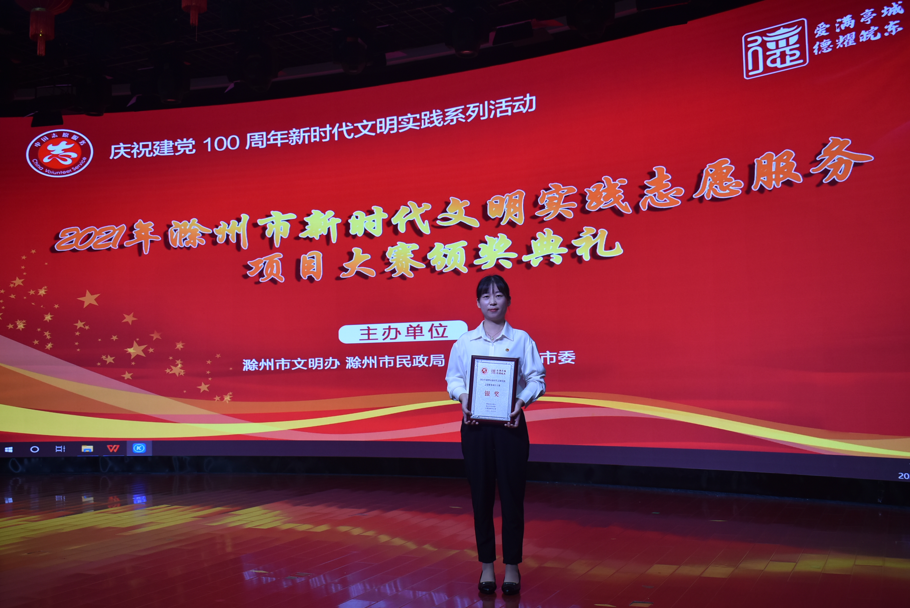 9月29日下午,2021年滁州市新时代文明实践志愿服务项目大赛在滁州市第二实验小学报告厅举行。awc官网食品与环境工程学院“萤火虫·环保”志愿服务项目在比赛中喜获银奖,团总支指导老师李瑞瑞作为项目负责人作现场汇报,经过激烈的角逐,最终取得银奖的好成绩!