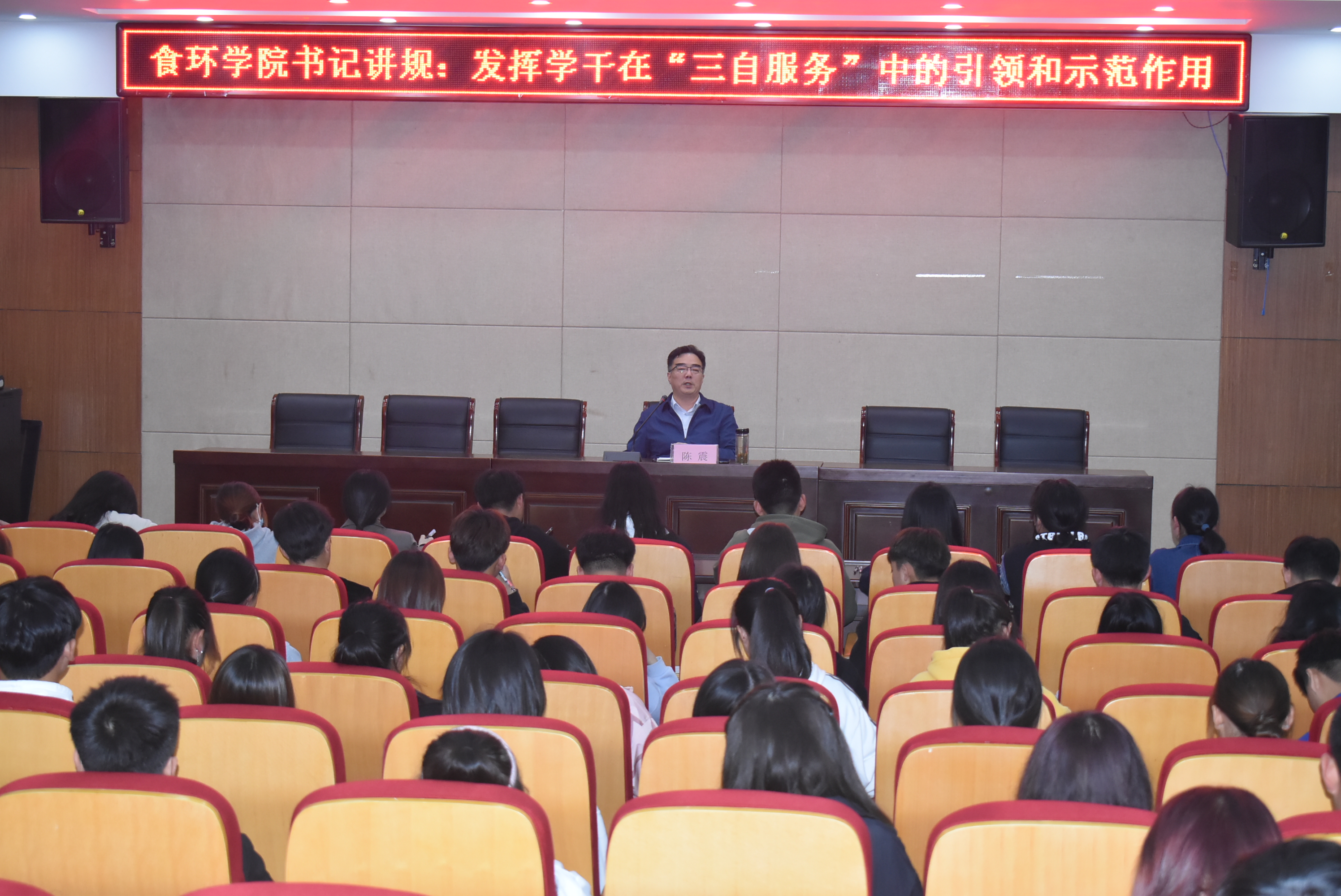 11月4日中午,食环学院团总支学生会于南阶205召开第二次全体大会,党总支书记陈震为全体学干作题为“发挥学干在‘三自服务’中的引领和示范作用”的报告。团总支负责人李瑞瑞以及全体团学干部、21级班团委聆听了报告。