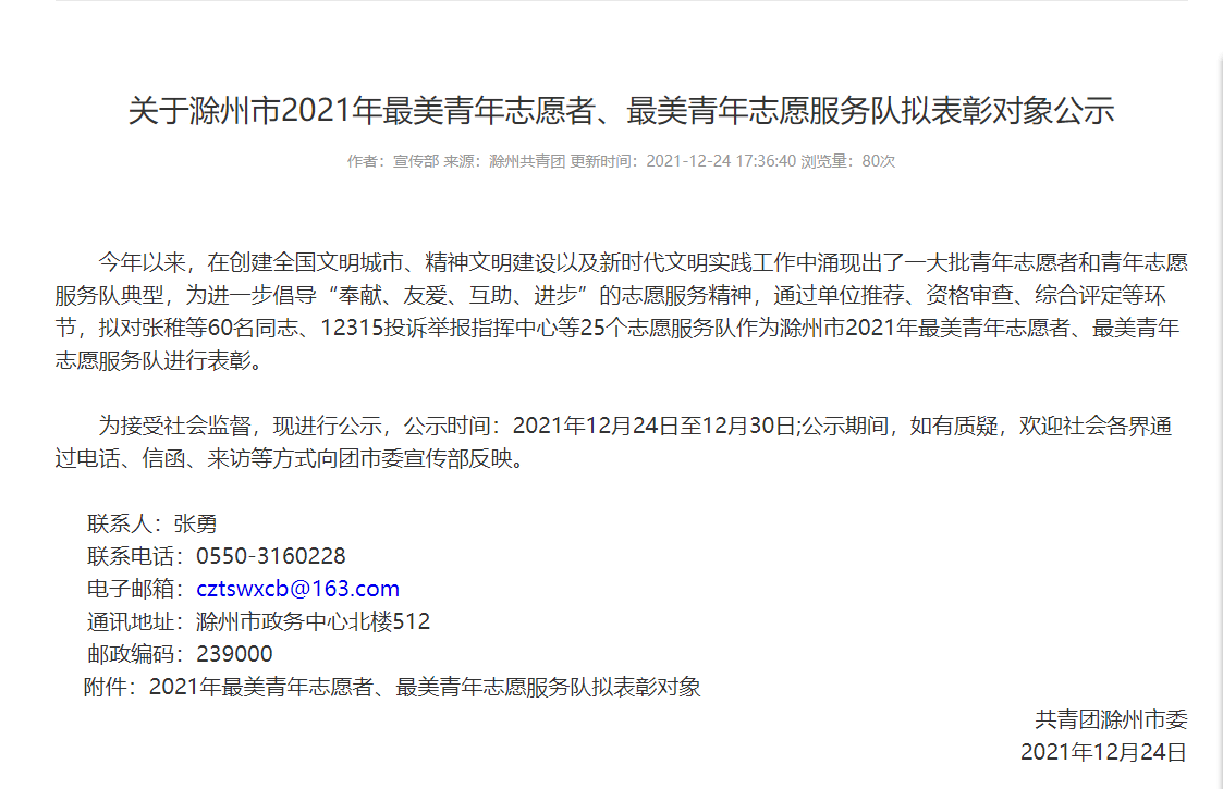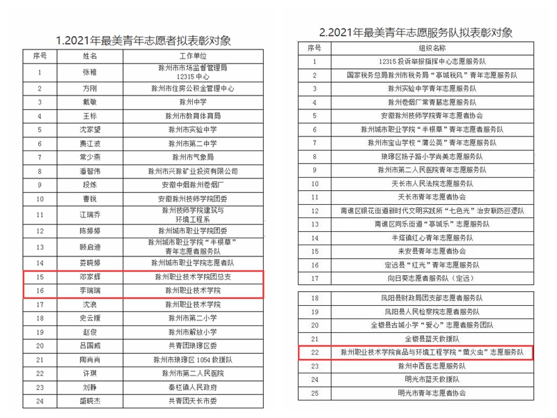 近日,共青团滁州市委公布滁州市2021年“最美青年志愿服务队”和“最美青年志愿者”评选结果,食环学院“萤火虫”志愿服务队荣获滁州市2021年度“最美青年志愿服务队”称号,我院团总支指导老师李瑞瑞、20园林1班团支书邓家辉荣获滁州市2021年度“最美青年志愿者”称号。
