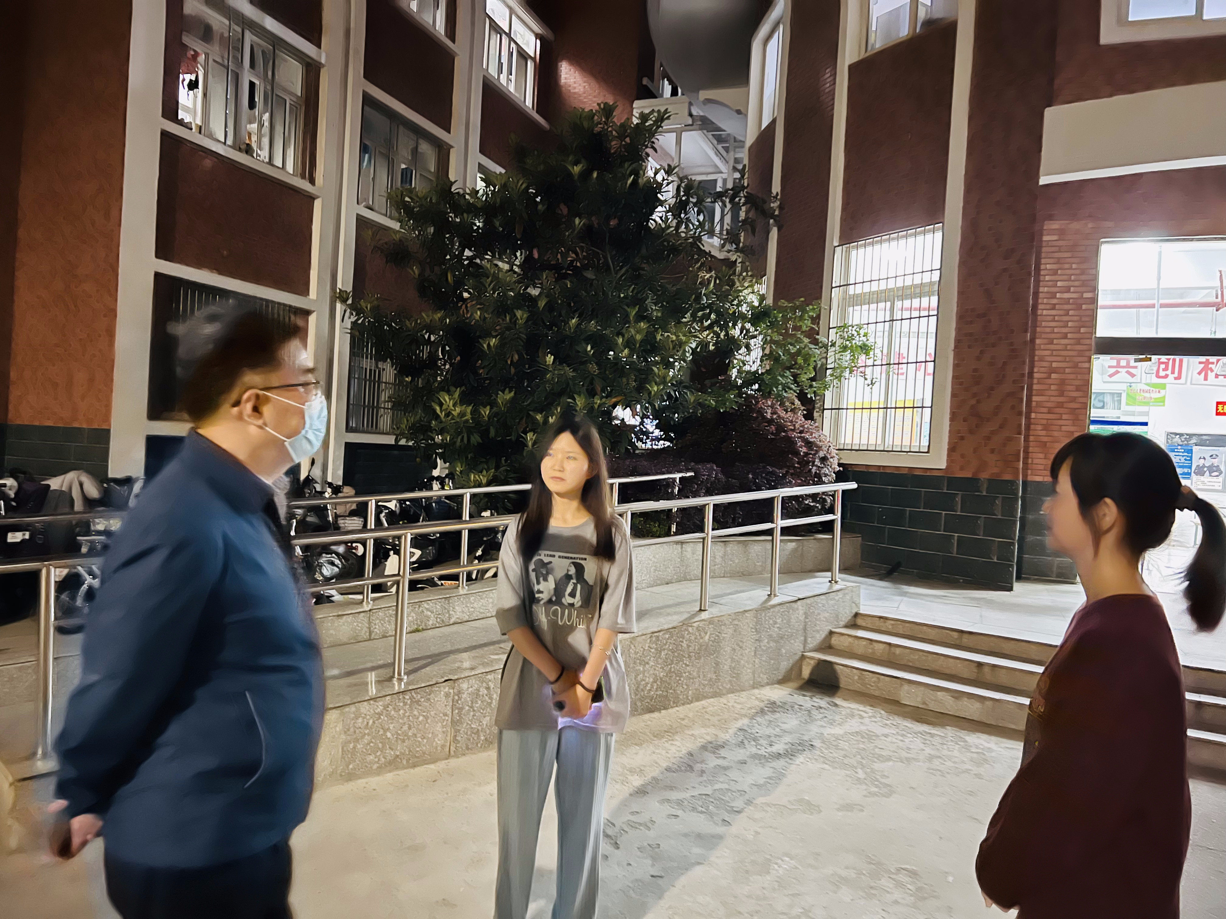 值班值守期间,班子成员广泛深入各包保年级和班级学生寝室,了解当前学生的所思所想,走访重点寝室和重点人群,与班委成员、与学生深入开展谈心谈话,给予指导和帮助。各班级,辅导员作为学生的主心骨和贴心人,始终工作在日常防控、宣传教育和立德树人的第一线,班委会、寝室及时有效地做好晨午检数据报送、归寝管理等工作,实时掌握每一名学生的情况。