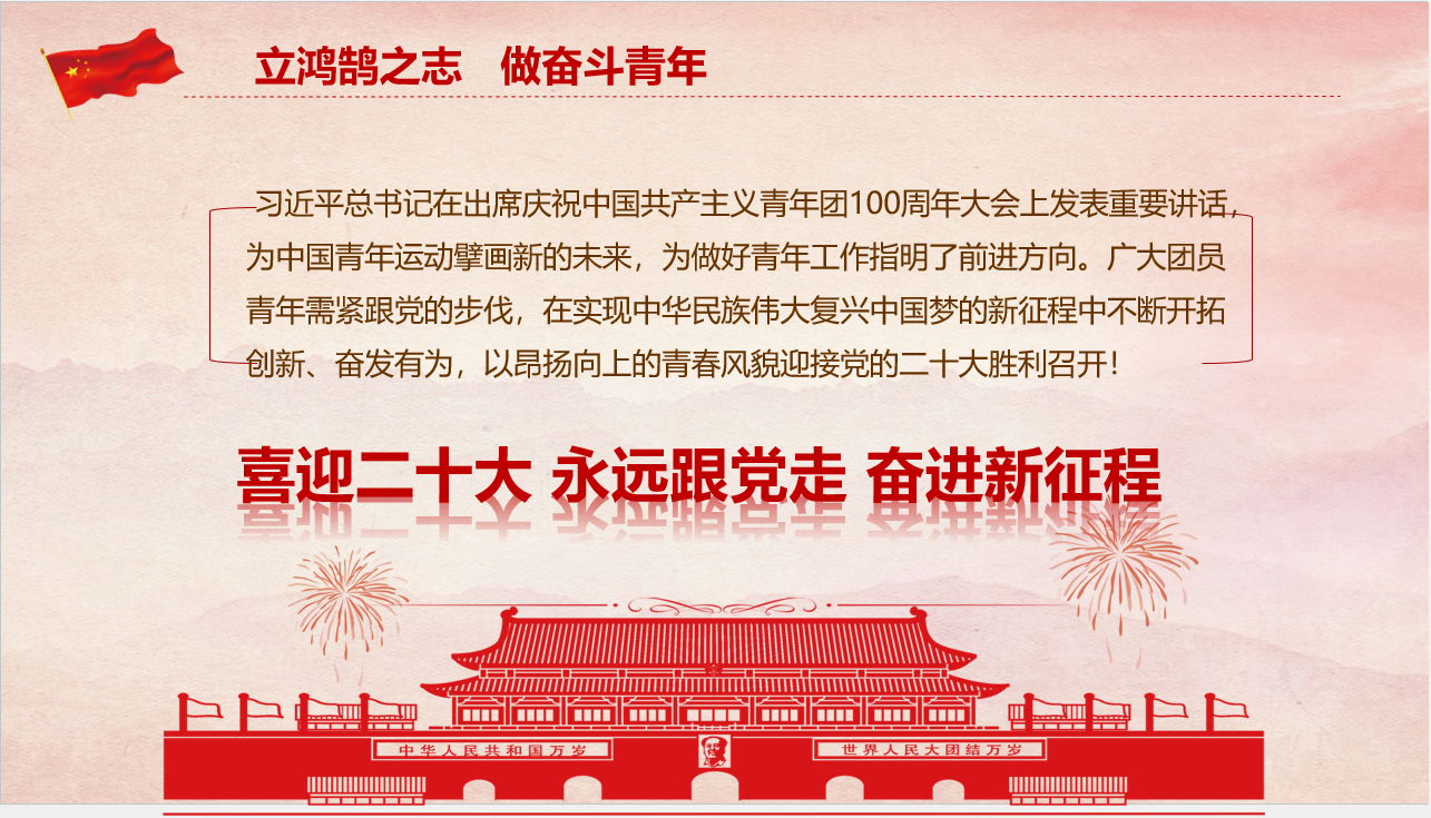 为进一步推动基层团组织规范化建设,加强对团员青年的政治引领和思想引领,激励广大团员青年担当作为,展示青春风采,以优异成绩迎接党的二十大和庆祝共青团成立100周年,5月16日,由食环学院承办的第十九届校园文化艺术节之“喜迎二十大、永远跟党走、奋进新征程”微团课比赛圆满落幕。