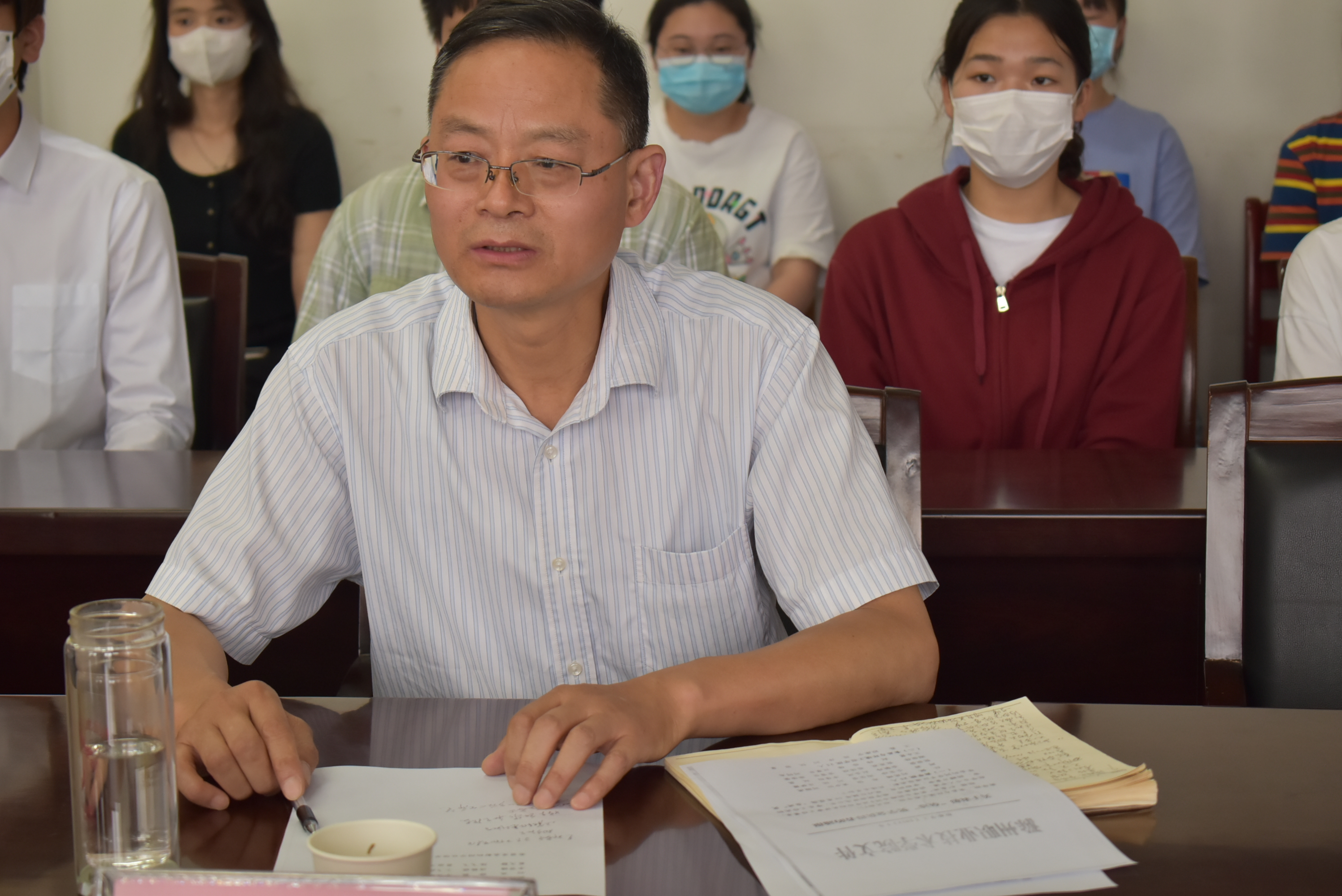 校学生处副处长薛天飞宣读《关于表彰“垒迹”奖学金获得者的通报》,食环学院欧康宇等25名学生获得此次奖励。由于疫情原因,企业负责人不能到校参加奖学金颁发仪式,薛天飞向获奖学生传达了企业的殷殷期盼和鼓励。