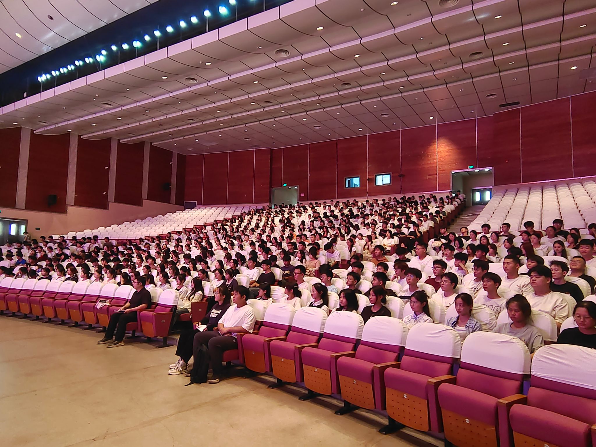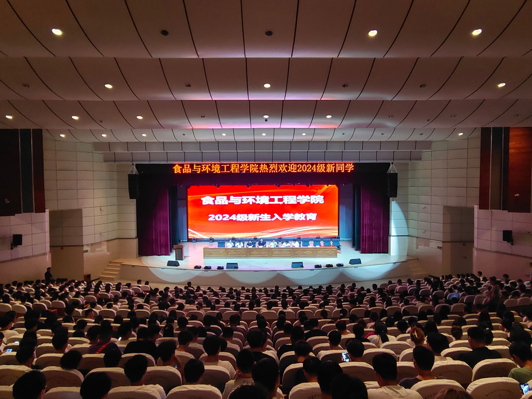 9月9日下午,食品与环境工程学院2024级新生入学教育在校大礼堂举行。食品与环境工程学院党总支书记张功会、院长梁建军、副院长孟飞、团总支书记施明远及系主任、实训中心主任、新生辅导员和2024级全体新生参加了会议。会议由党总支副书记江生泉主持。