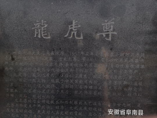 此外,在1957年阜南县发现文物——龙虎尊。在街心公园内设有相关雕像并配有相关文字加以介绍。