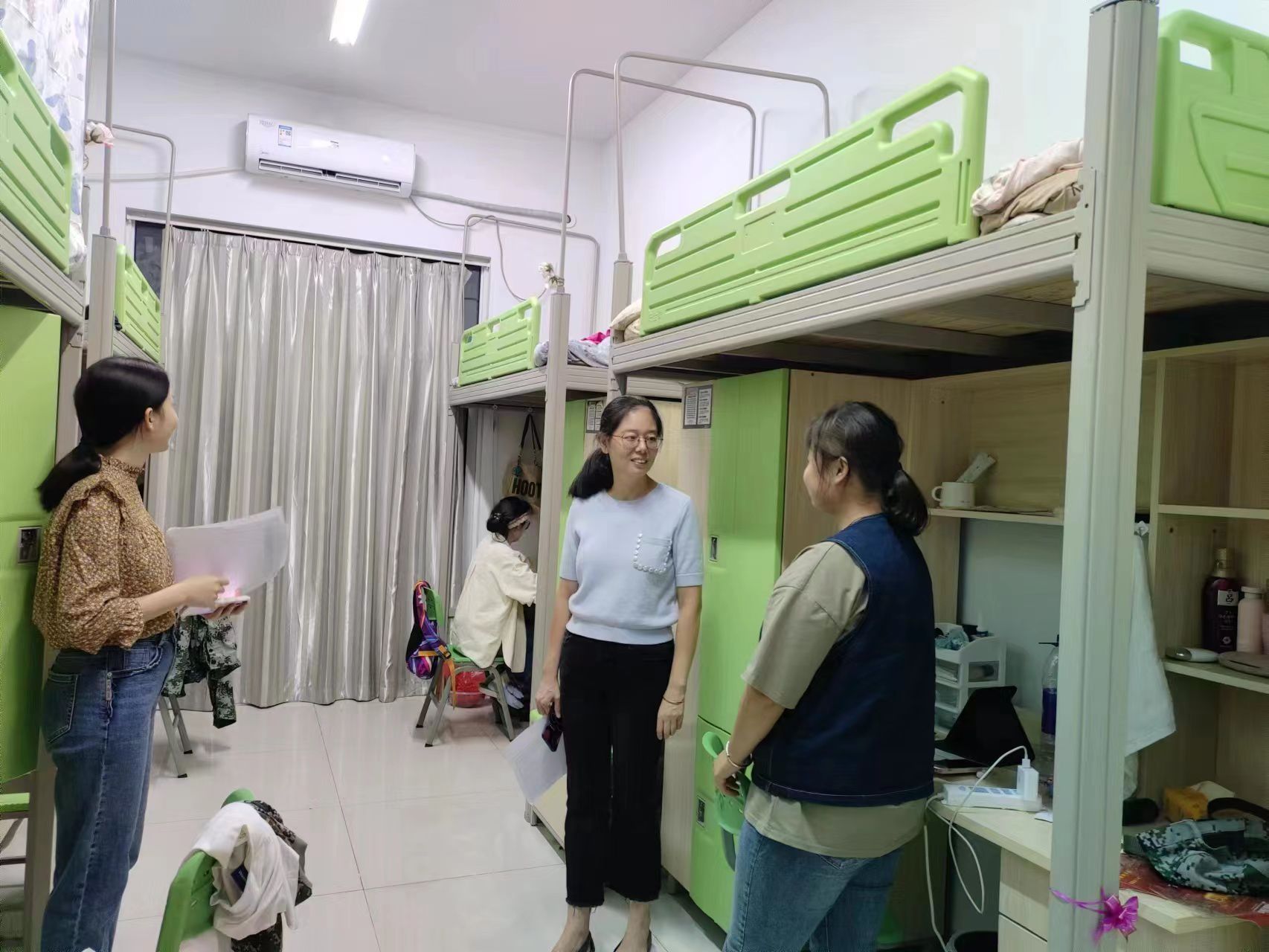 9月12日晚,李晓辕和刘璐璐走访学生宿舍,关心学生在新学期的学习与生活情况,倾听学生声音,走进学生生活一线,更好的了解在课堂之外学生的身心健康情况,获得了学生的热烈反馈和积极响应。