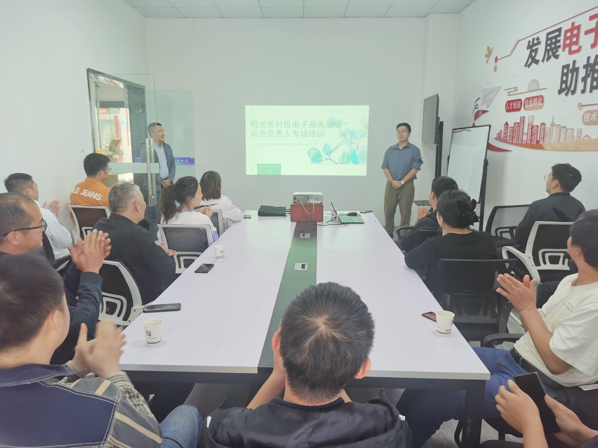 为响应国家支持农村电商发展趋势,提升农村电子商务服务站点负责人综合能力与素质,加强我院电子商务专业与社会组织沟通交流,10月25日由明光市商务局主办,明光市电子商务服务中心承办的“明光市村级电子商务服务站点负责人专场培训”在明光市电商产业园举行。此次培训邀请了我院电子商务系教师王福盛为各站点负责人进行培训。