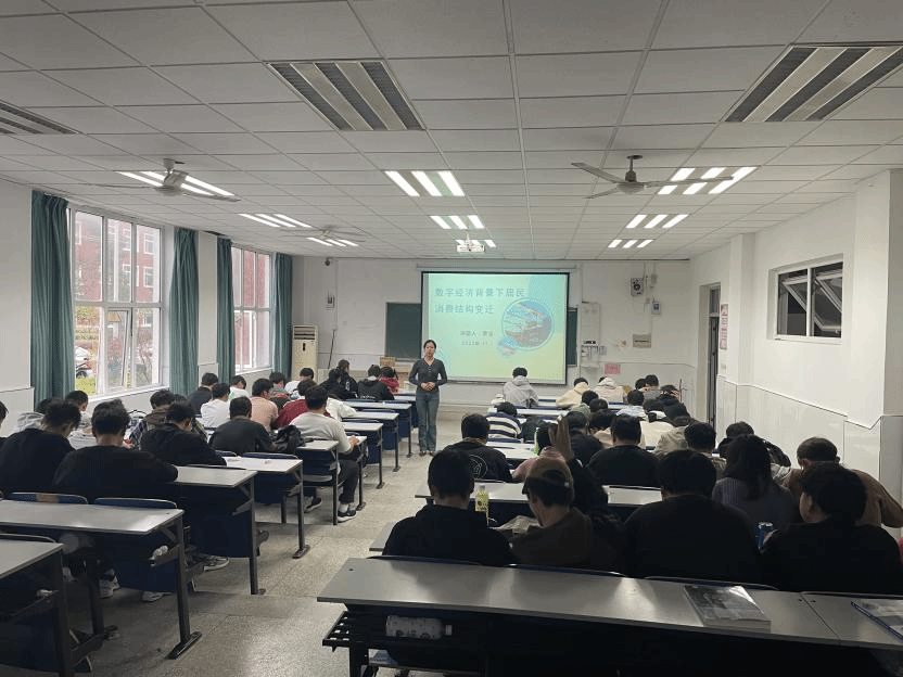 2023年11月1日,商学院市场营销专业副教授曹洁老师面向营销专业、无人机专业学生开展了一场别开生面的学术交流,主题内容为“数字经济背景下居民消费结构变迁”。
