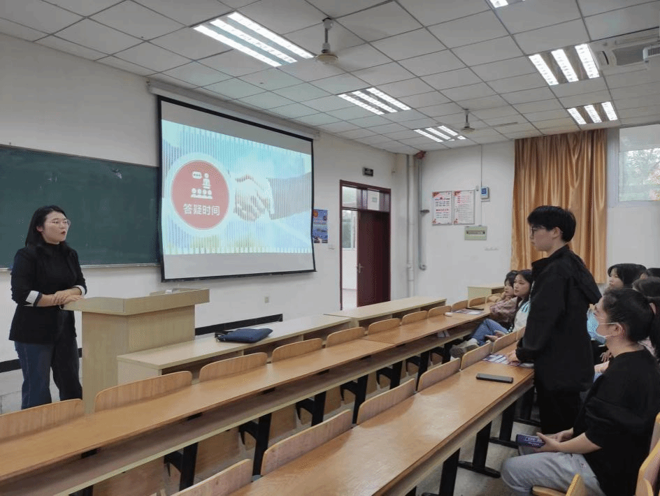 安徽云伙计数字科技有限公司首先为毕业生们介绍了公司的主营业务,发展历程、产教融合成果以及滁州分公司的基本情况;之后对招聘岗位的工作内容、薪资制度、工作时间和工作环境等进行了重点介绍,帮助学生进一步了解公司的实习和工作条件;最后,企业与毕业生们进行了互动交流,并且通过建立微信群来帮助学生答疑解惑,确保招聘岗位与毕业生实际需求相匹配。