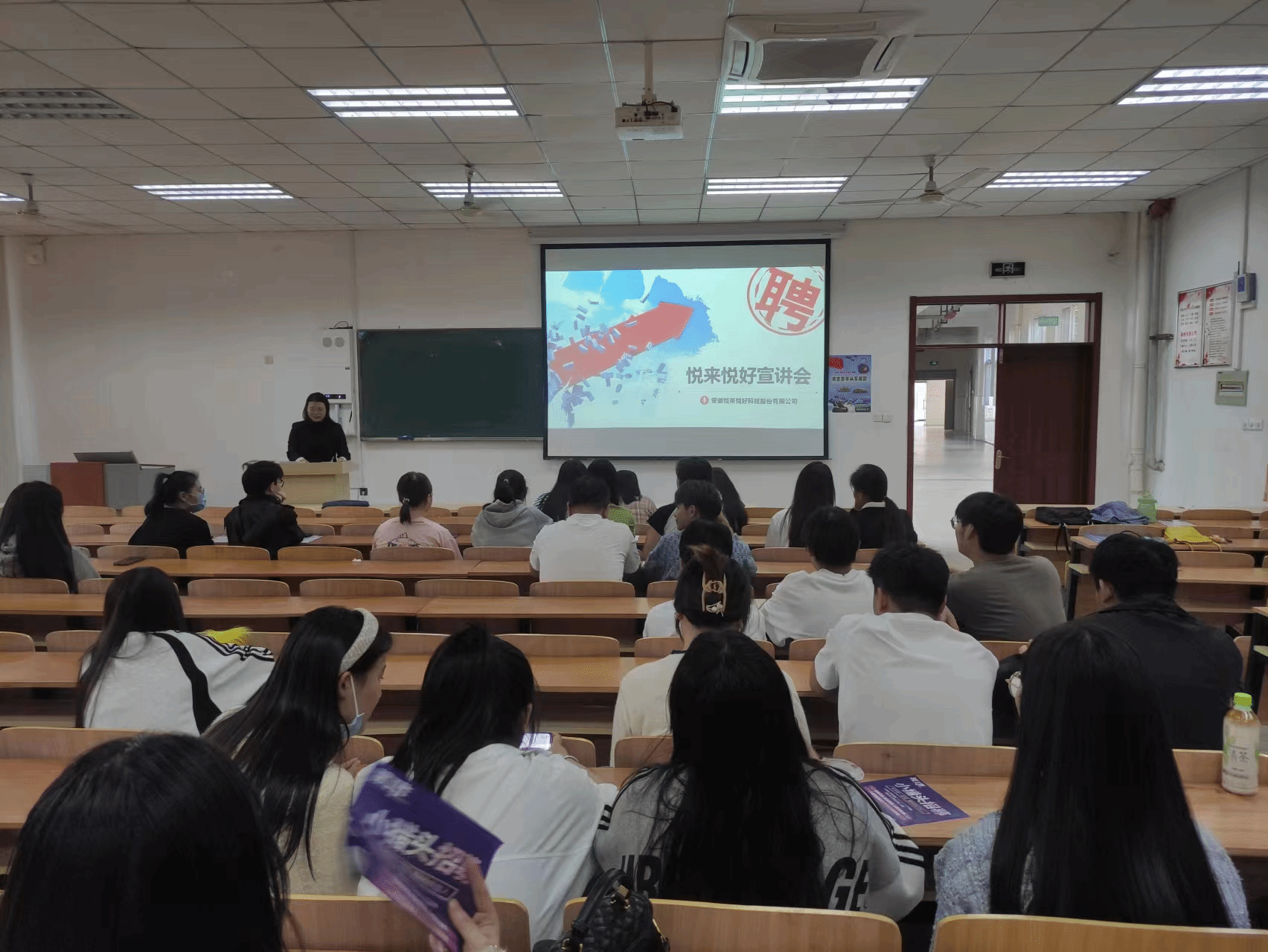 安徽悦来悦好科技股份有限公司的人事主管首先介绍了本公司的企业文化和发展现状,之后就学生们比较关心的工作环境、福利待遇、岗位任职要求等问题进行了较为细致的说明,之后又详细介绍了具体的应聘流程,帮助学生提高求职应聘效率。现场,学生们积极参与互动,主动就自己关心的问题提出疑问,与企业代表进行了深入交流。