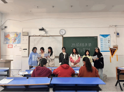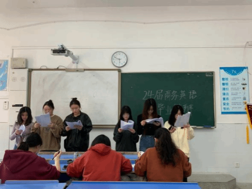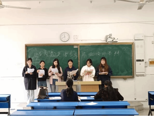 24届商务英语专业共有114名学生,由五位指导老师分组指导。开学伊始,同学们接到选题后,线上线下与指导老师多次交流,确定毕业设计提纲;10月初各组完成初稿,经过3-4轮修改后最终定稿。经5位指导老师商量后定于11月8号下午进行24届商务英语专业毕业设计答辩。鉴于学生数过百,答辩共分两组进行:齐巧云老师和陈艳老师负责A组答辩;程诚老师、伍媚老师和刘璐璐老师负责B组答辩。