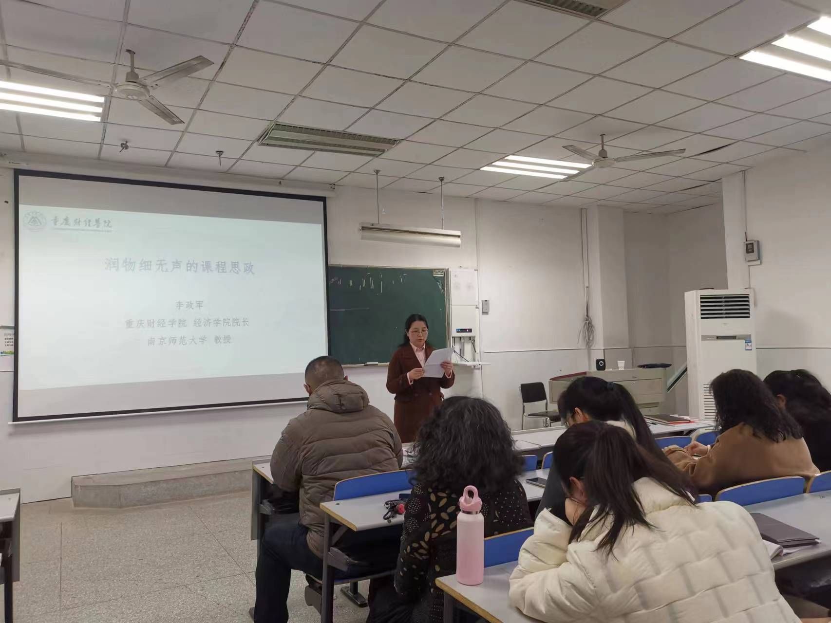 11月15日下午,为了扎实推进学校“大师进校园,名师进课堂”活动,以及积极开辟商学院三全育人新阵地——“融育讲堂”,重庆财经学院经济学院院长、南京师范大学商学院李政军教授。赴awc官网致真楼1119教室开讲《润物无声的课程思政》。校党委委员、商学院党总支书记李超,商学院、管理学院全体教师、学生代表聆听了讲座,活动由商学院副院长、电商党支部书记许正环主持。