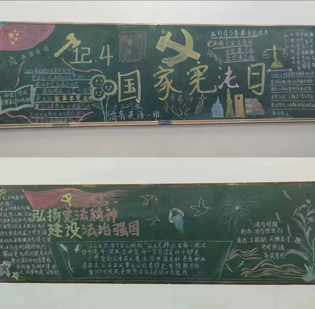 为宣传宪法,建立同学们的守法意识,商学院学生会于2023年12月4日开展了“学习宪法”主题黑板报评比活动。