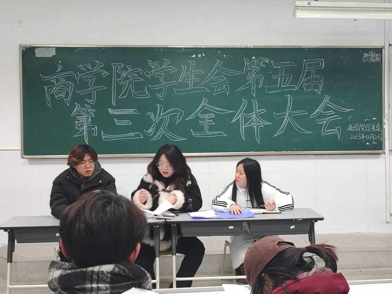 为了让大一干事更好的了解到学生会工作职责,加强学生自主管理能力,商学院学生会于12月20日晚在致真楼1101教室开展了商学院第五届学生会第三次全体大会,学生会全体人员参加此次会议。
