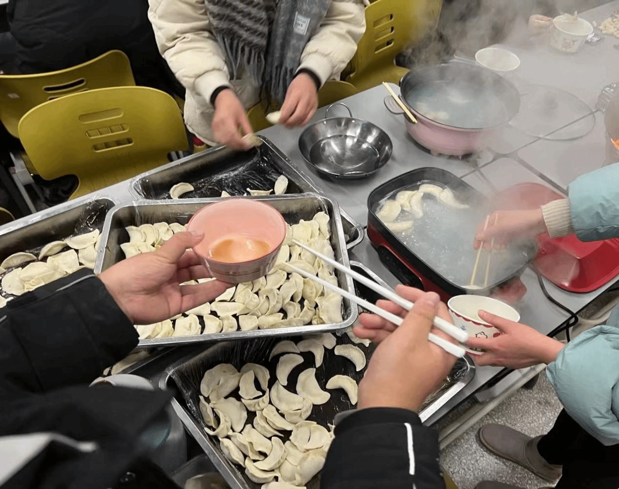 同学们在辅导员李云的带领下布置活动现场、包饺子、煮汤圆。在大家共同努力下,一锅锅热气腾腾的饺子、汤圆出锅,大家共同品尝,分享美食和节日的快乐。