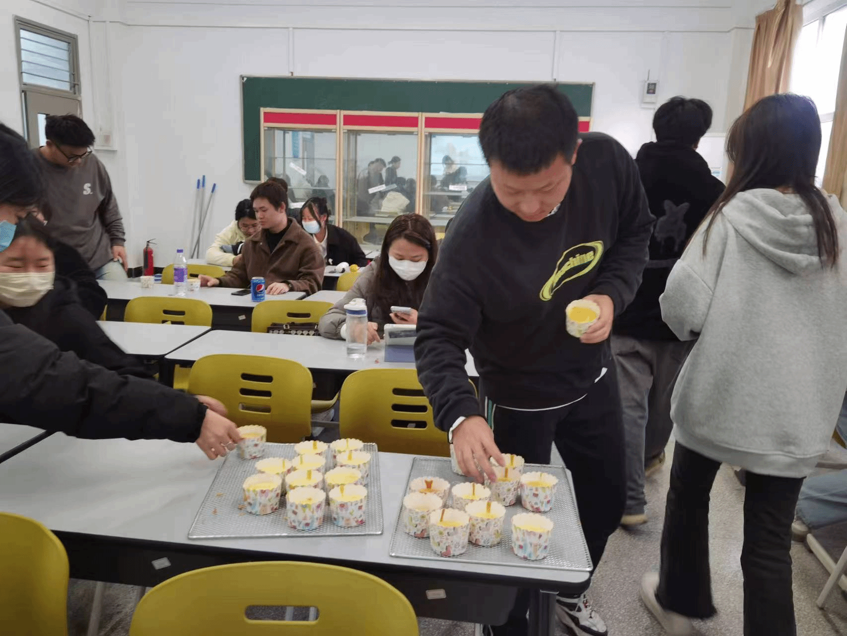 在整个过程中,主要采用任课老师讲解制作要领、学生动手实践的方式,最终耗时1.5小时,香喷喷的纸杯蛋糕出炉,学生们得以品尝自己的劳动成果。