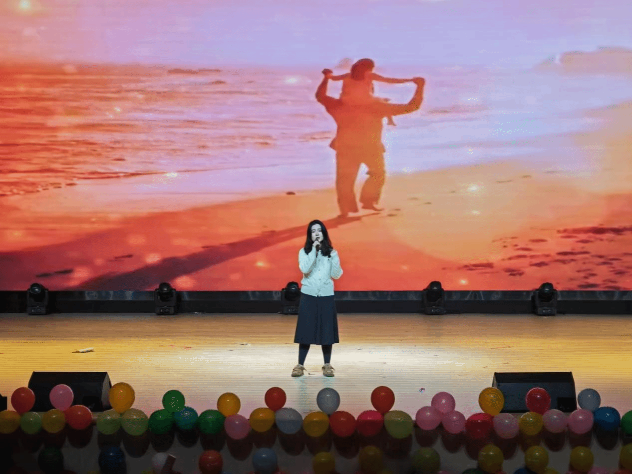 学校礼仪队的走秀和独舞《Go Heart》的精彩表演也将晚会气氛推向高潮,观众席热情的挥舞手中荧光棒。朗诵《老物件里的红色记忆》 让我们感受到了老一辈人的情感记忆,相声《考上皇家养老学院后》、歌曲《别等》以及热舞《DU DU DU》让晚会气氛一次又一次地推向高潮,最后,晚会在歌曲《相亲相爱一家人》的温馨气氛中落下帷幕。