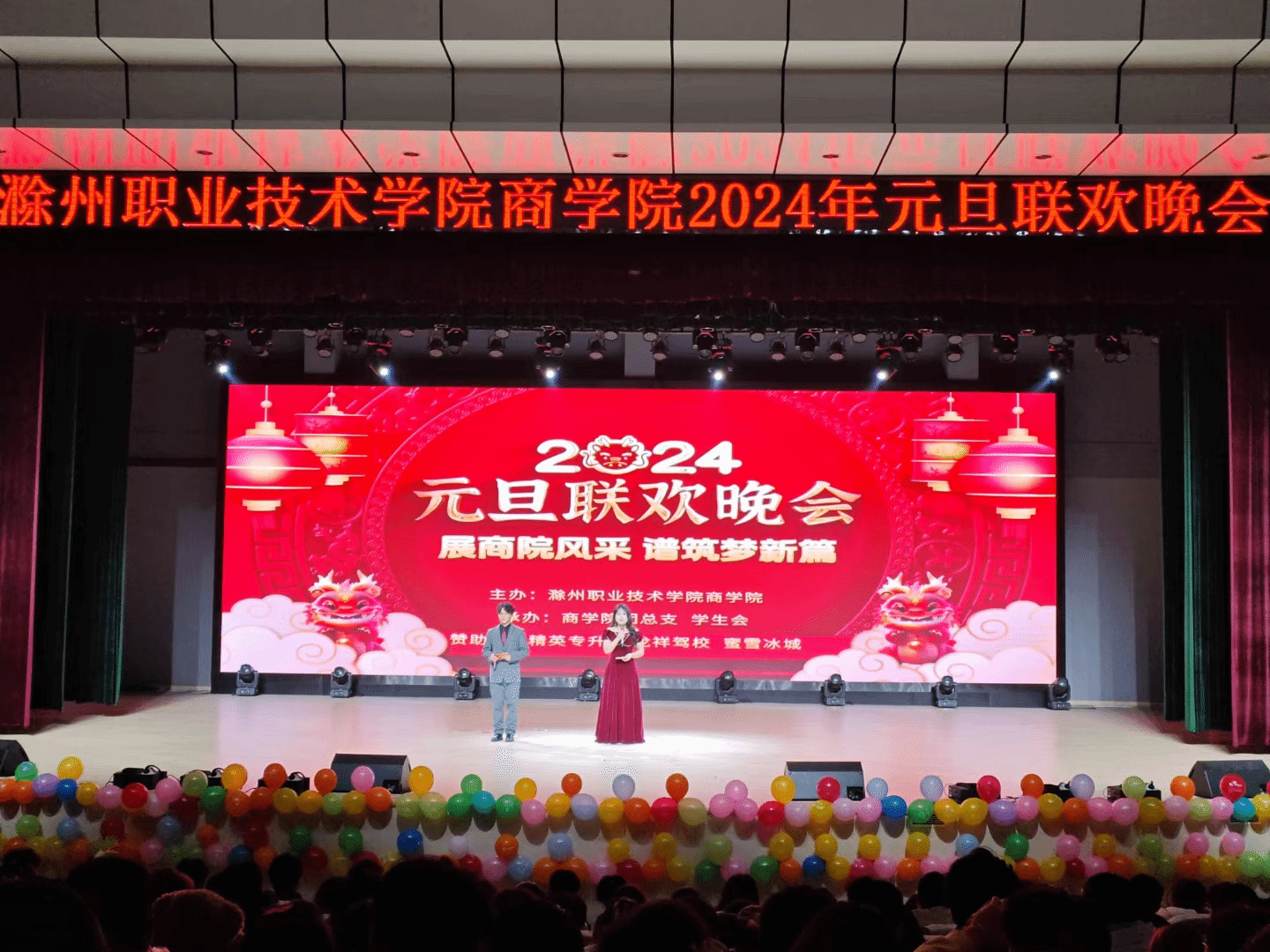 在长达两个小时的晚会中,我院学生用自己特有的方式,展现青春风采,表达新年祝愿,寄予美好希望。愿我们在2024年扶摇直上更进一步,龙翔万里,乘风而上,共同开启商学院的璀璨新篇章!