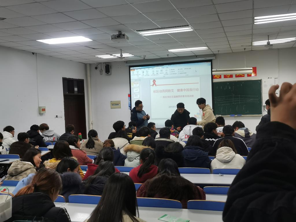 首先,团总支成员周建强为我介绍目前艾滋病的疫情,青少年的性生理特点着手讲解目前青少年最容易引发艾滋病的原因。因为青少年懵懂冲动,而且就目前中国艾滋病发生人群来讲,青少年艾滋病的发生概率逐步呈上升趋势,所以目前青少年防艾,是中国的重中之重。接着,主持人通过讲知识点、展示PPT、现场互动的形式向同学们传授艾滋病的基本知识,通过什么方式传播(血液传播、性传播、母婴传播)、防控要点(让男性同学注意性爱方式,性爱时一定要戴套,及不以任何方式吸毒,不共同使用注射器,纱布等等)。紧接着在现场进行有关预防艾滋病知识的补充,告诉同学们不要因为一时糊涂让自己后悔。活动最后,主持人利用多媒体为同学们讲解了安全套的正确用法,并希望同学们要爱护自己的身体,不要冲动伤害了别人,也伤害自己。现场讲者讲得认真,听者听得专注。
