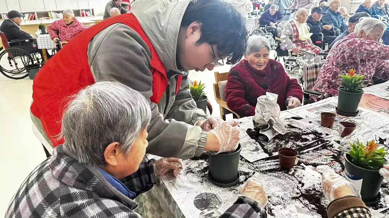 为了弘扬“敬老·爱老”的传统美德,宣扬雷锋精神,同时传递“爱绿·护绿”植树精神,2024年3月12日上午,商学院学生会一行13人,在学生会主席团的带领下,前往滁州市丰华养老院开展“播种绿色 收获美好”盆栽DIY志愿服务活动。