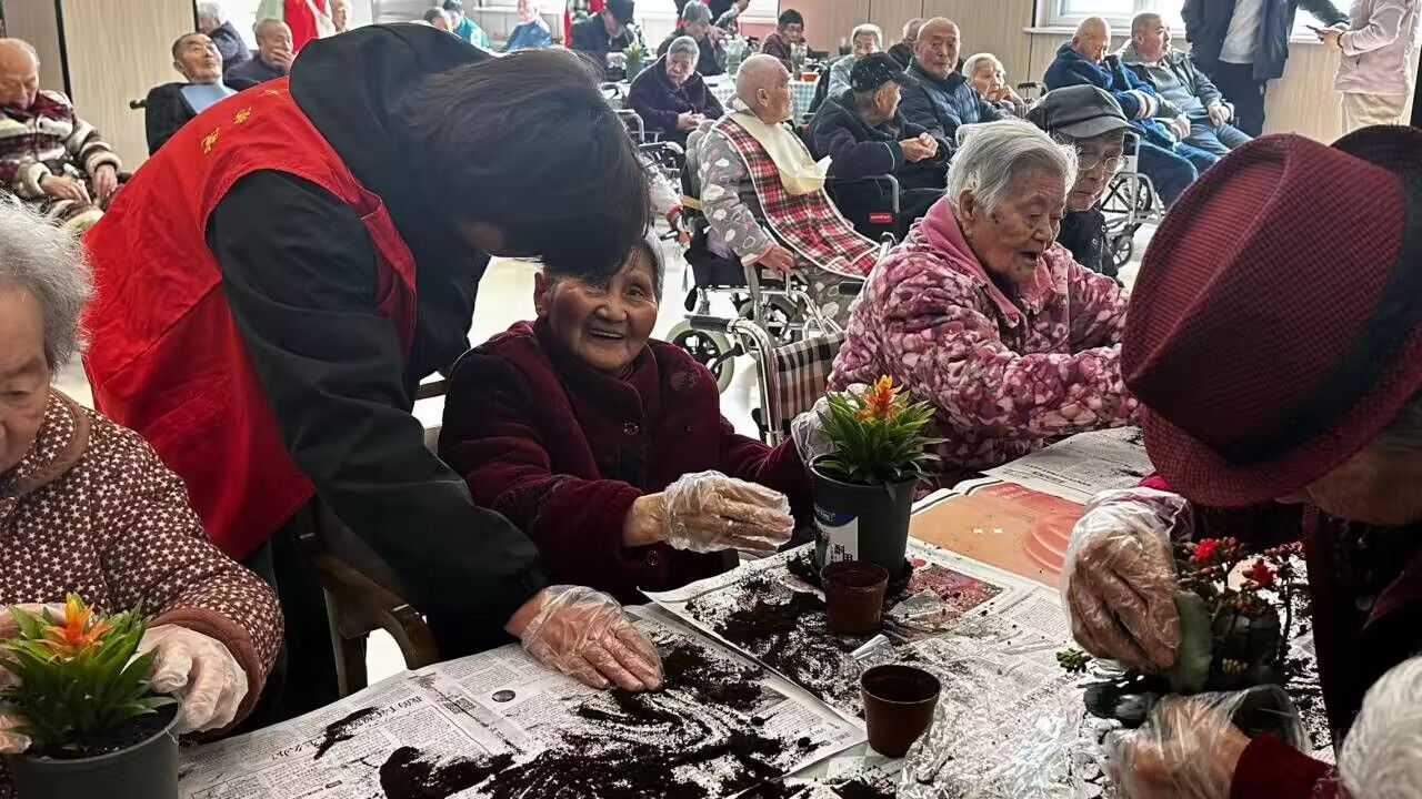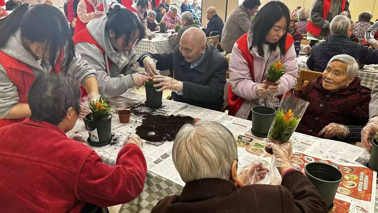 在活动开始前,学生们与老人们进行了亲切的交流与互动。活动过程中,大家分工明确,有的帮助老人清理花坛、培土,有的挖坑、种花,学生与老人们相处的其乐融融。经过一个多小时的悉心种植,一盆盆造型各异、多姿多彩的盆栽在老年人们的手中逐渐成型,看到自己亲手种下了绿色与春天,笑容洋溢在他们的脸上。