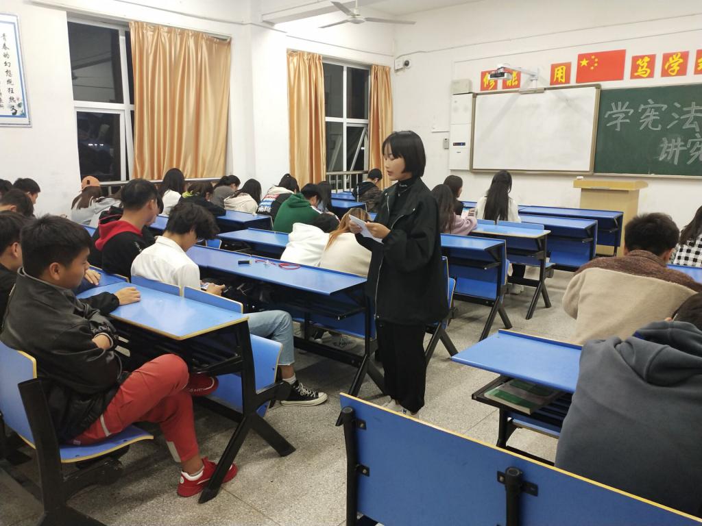 会议上,辅导员从什么是“法”、什么是宪法、宪法的作用、宪法是如何规范国家权利、宪法是如何保障公民权利以及如何调整社会关系六个方面进行讲解,深入浅出,层层递进,通过结合文字、图片和具体案例讲解,从而使学生深入了解宪法、尊崇宪法,弘扬宪法精神,维护宪法权威,增强法治观念。