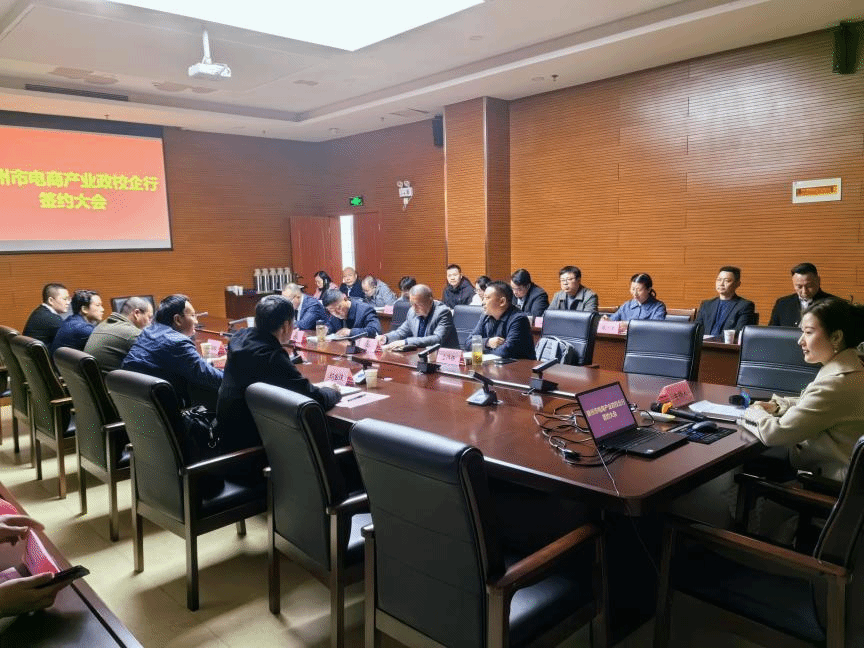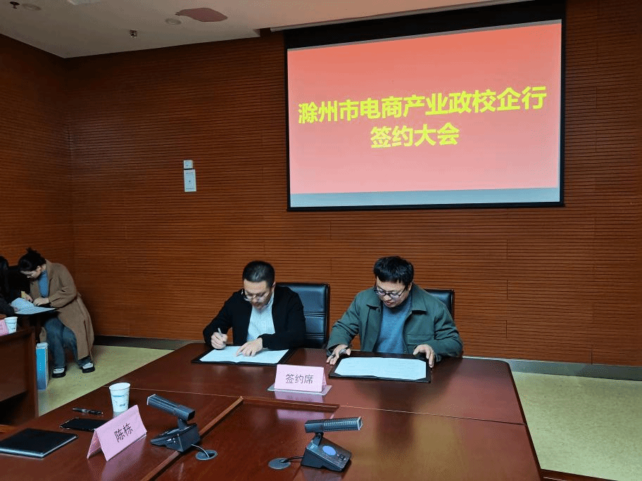 2024年3月22日上午9点在滁州市党校召开了由滁州市商务局、滁州三所本地高校、滁州市电子商务商会及部分理事单位、滁州市市场监督局共同参加的政校企行签约仪式。