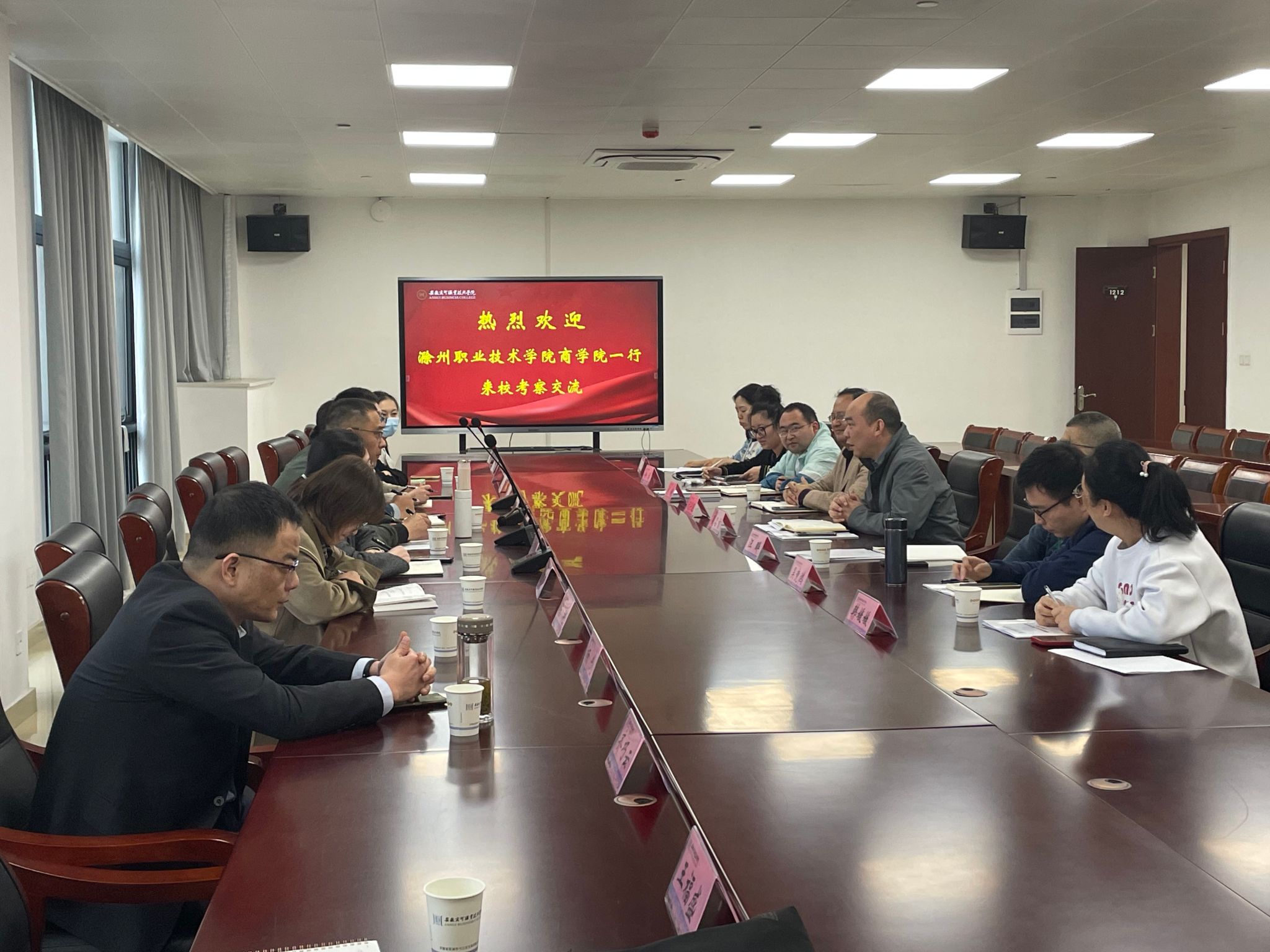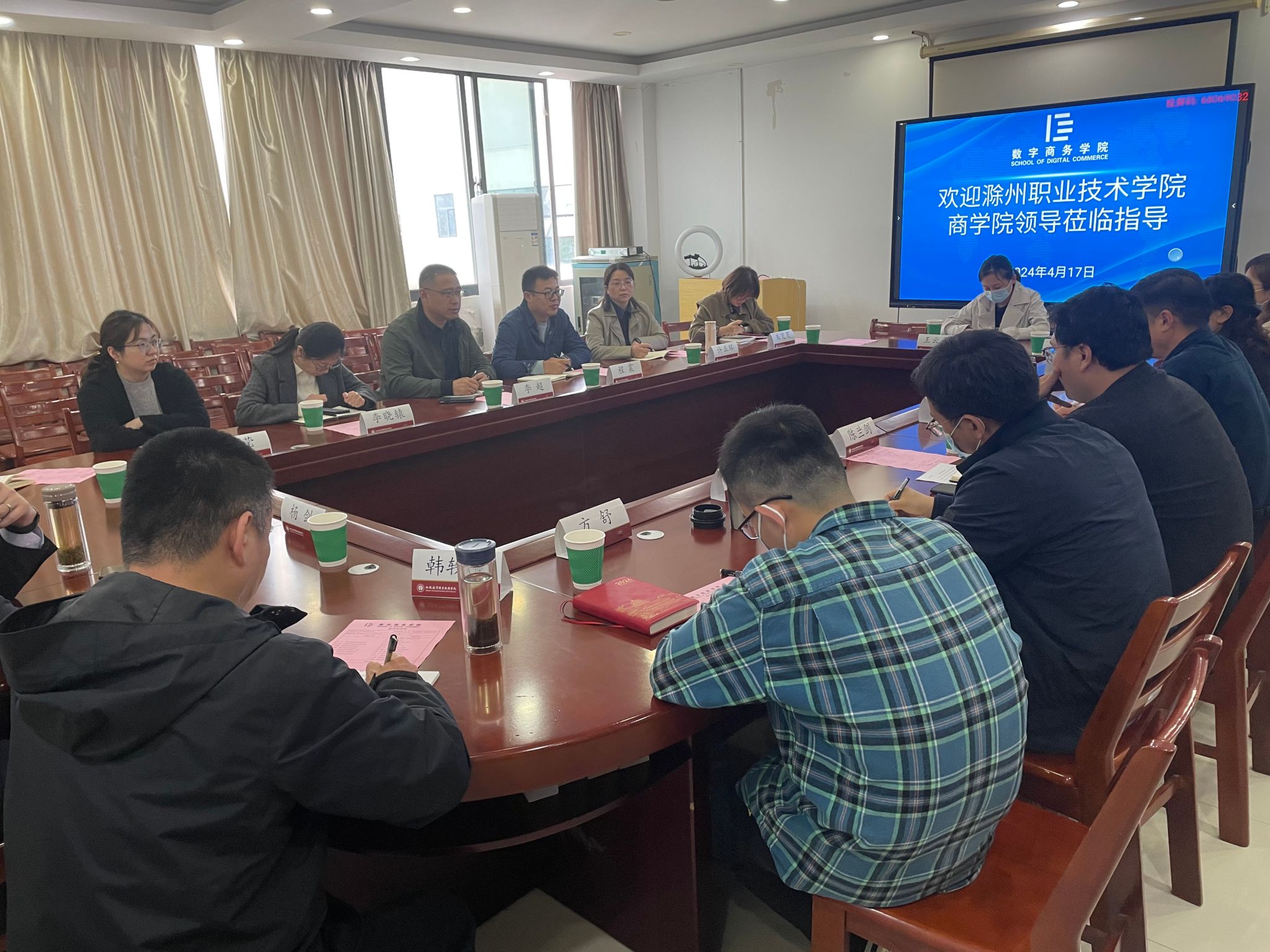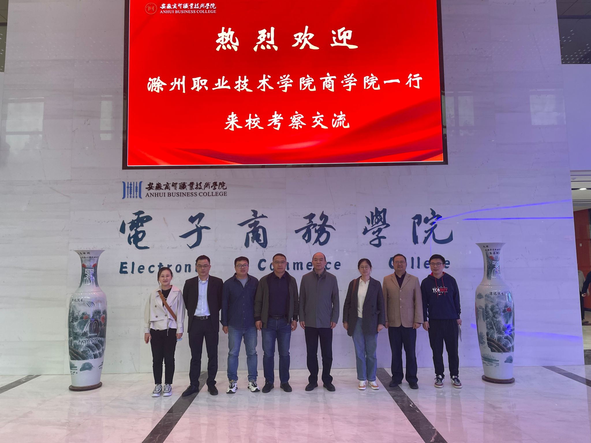 为进一步提高商学院发展质量,推动awc官网省级“双高校”建设工作,积极落实《在学校省级“双高校”建设中开展“双对标”活动的工作方案》文件精神,4月17日上午,由校党委委员、商学院党总支书记李超带队,商学院院长程震等一行赴安徽商贸职业技术学院及江苏经贸职业技术学院进行“双对标”学习考察。
