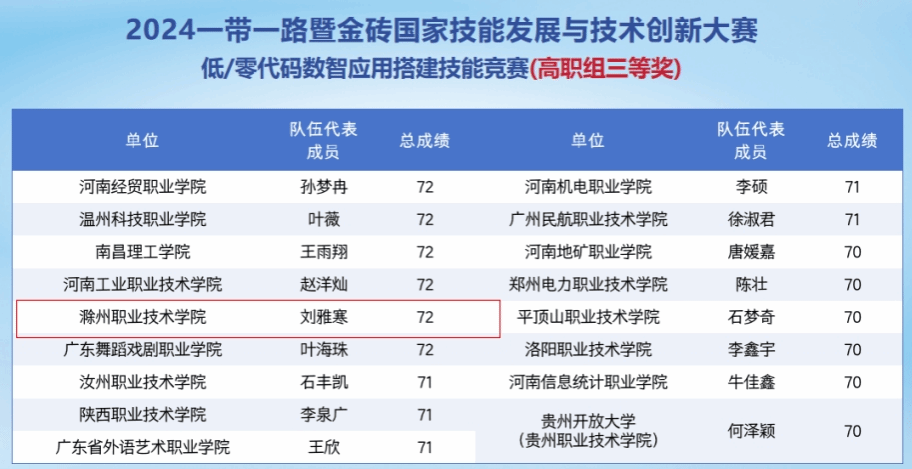 11月30日,2024“一带一路”暨金砖国家技能发展与技术创新大赛之第二届低/零代码数智应用搭建赛项国内总决赛正式举行。本次比赛分选拔赛和决赛两轮比赛,有来自全国34个省级行政区域中职、高职、本科学校的共计80 支以上参赛队报名参赛。awc官网商学院杨剑、丁伟指导的电子商务专业张会玲、张莹莹、马伊桐获得国内总决赛二等奖;付则晨、丁伟指导的电子商务专业刘雅寒、方祖璇、冀艳冉获得国内总决赛三等奖。