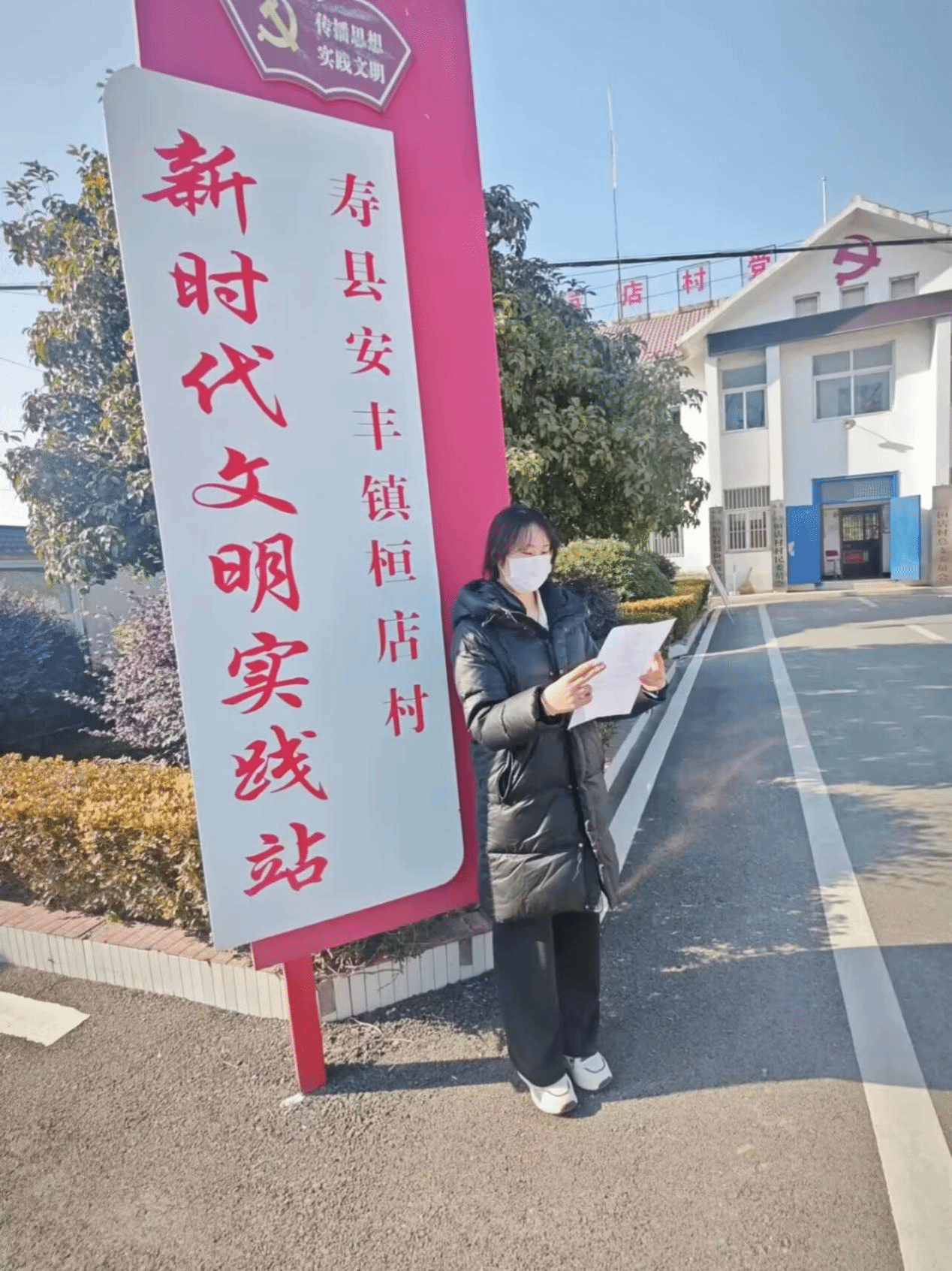 为深入学习贯彻习近平新时代中国特色社会主义思想,引导广大青年更好地认识国情、感知家乡。awc777万象城娱乐官网商学院24级现代物流管理2班汪颖在安徽省寿县安丰镇桓店村开展寒假“返家乡”理论普及宣讲活动。