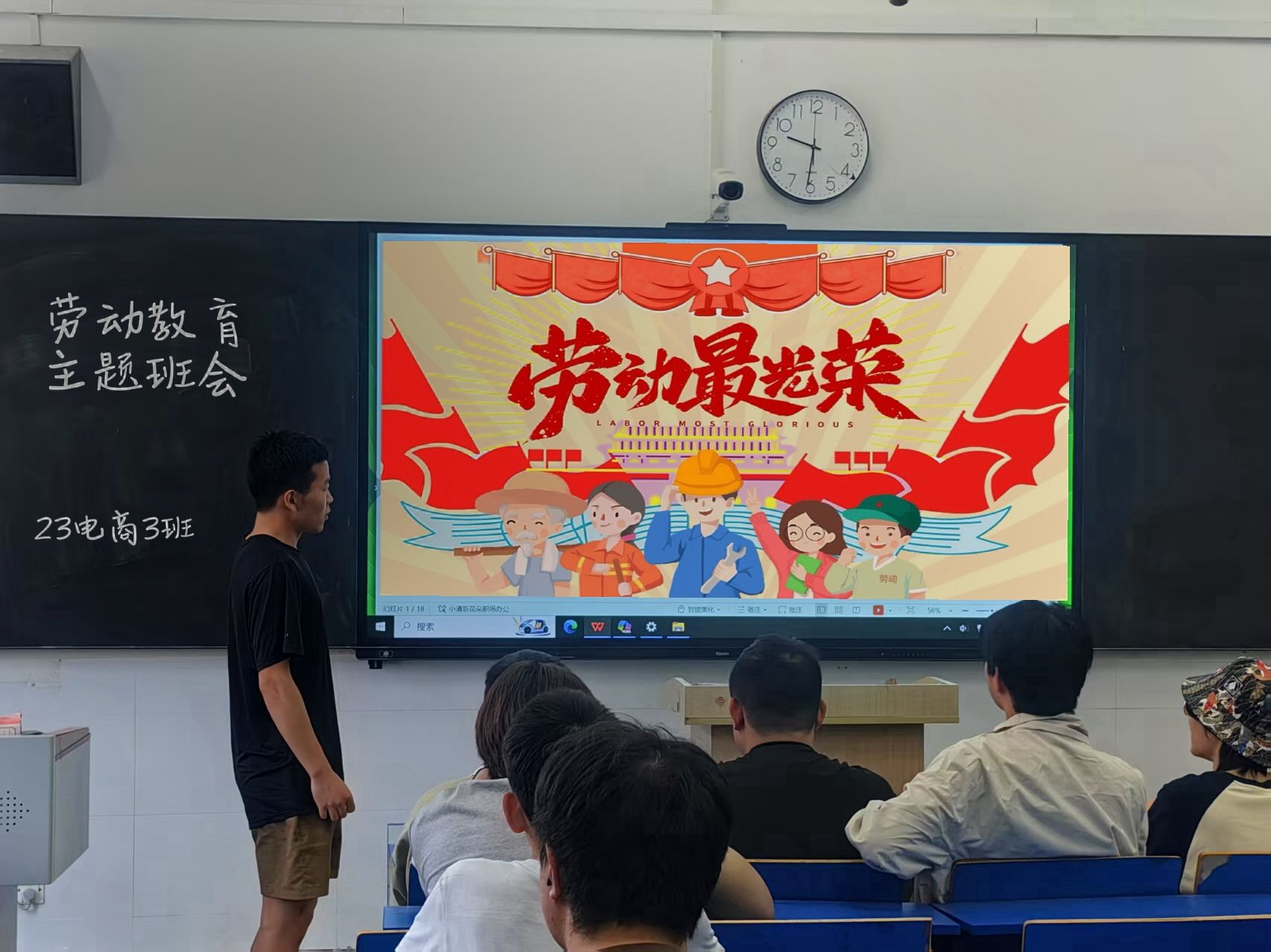 为培养学生的劳动意识和实践能力,5月6日,商学院23电商3班在1214教室开展了劳动教育主题班会。此次班会由杨晨主持,全班同学积极参与。