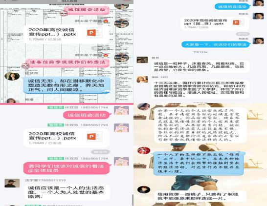诚信是人们普遍赞誉的一种美德,为了加强学生的诚信教育,树立诚信之风,建设诚信校园,增强同学们的诚信意识。商学院学生会生活部于6月23日举办“诚信主题班会”活动。