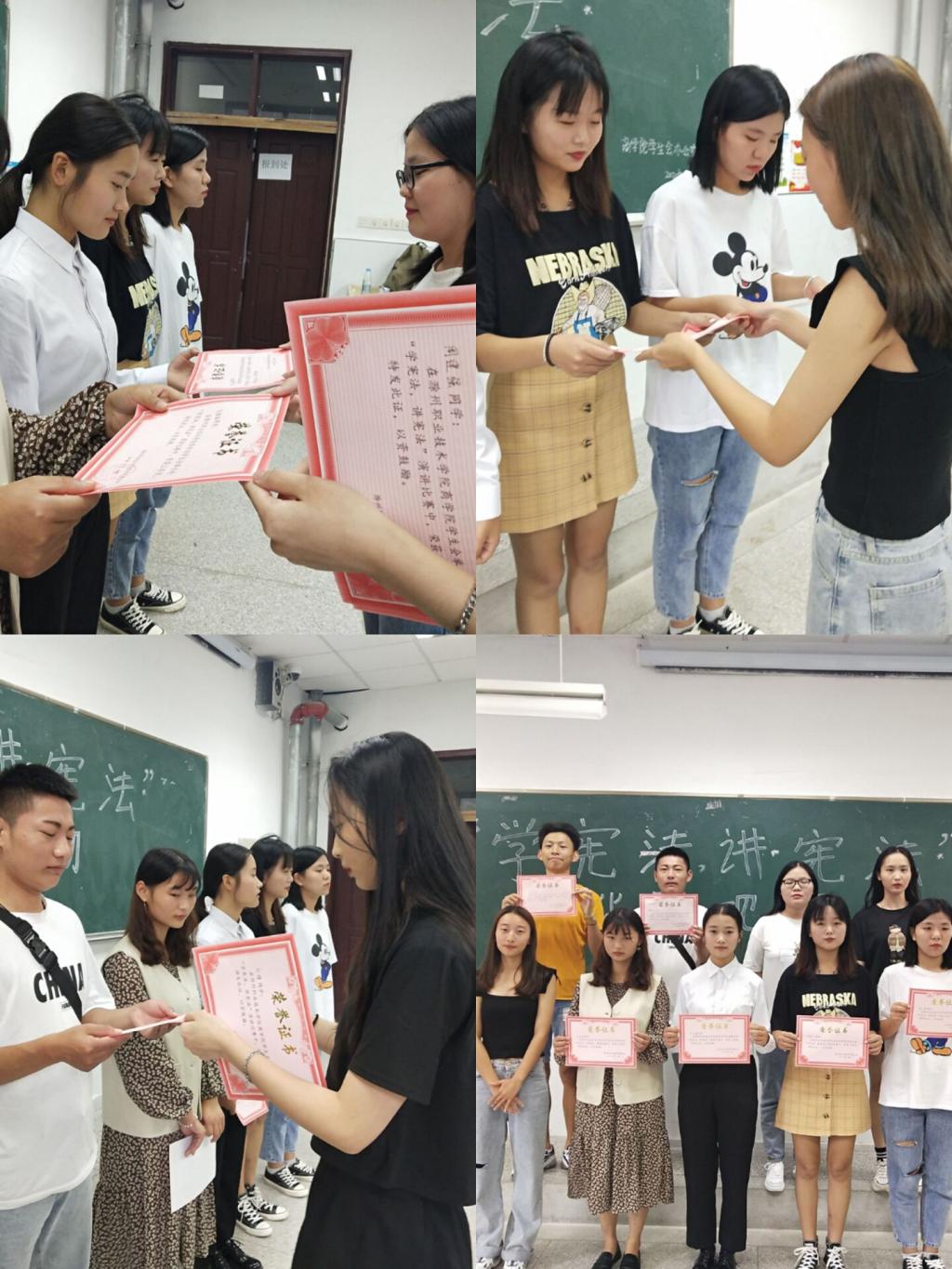 活动开始,由主持人介绍比赛规则。比赛现场,选手们沉着自信,侃侃而谈,围绕自身经历和时政热点,或讲宪法故事、或谈宪法认识、或论宪法精神,道出自己的独特见解。演讲结束后,评委们对比赛进行点评,令现场的选手和同学们获益匪浅。经过激烈角逐和评委们的认真研究后,最终19电子商务三班李汉妮获得一等奖;19电商二班刘鸣宇、19市场营销一班单文清获得二等奖;19市场营销三班刘辉、19电商三班周建强、19市场营销二班牛路路获得三等奖;之后评委为获奖同学颁奖并合影留念。