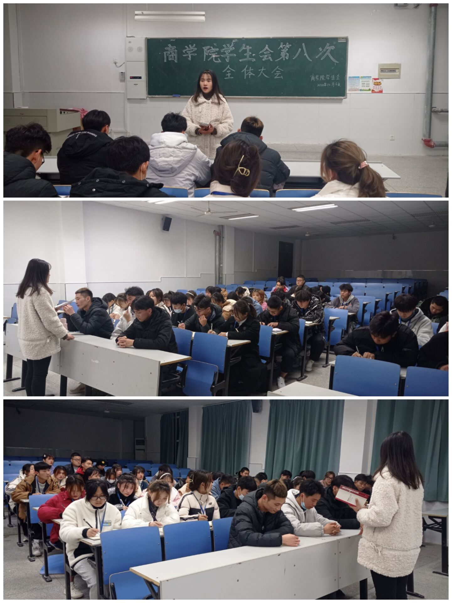 为加强学生会内部管理,提升学生工作质量,商学院学生会于12月6日在1119教室召开第八次全体大会。