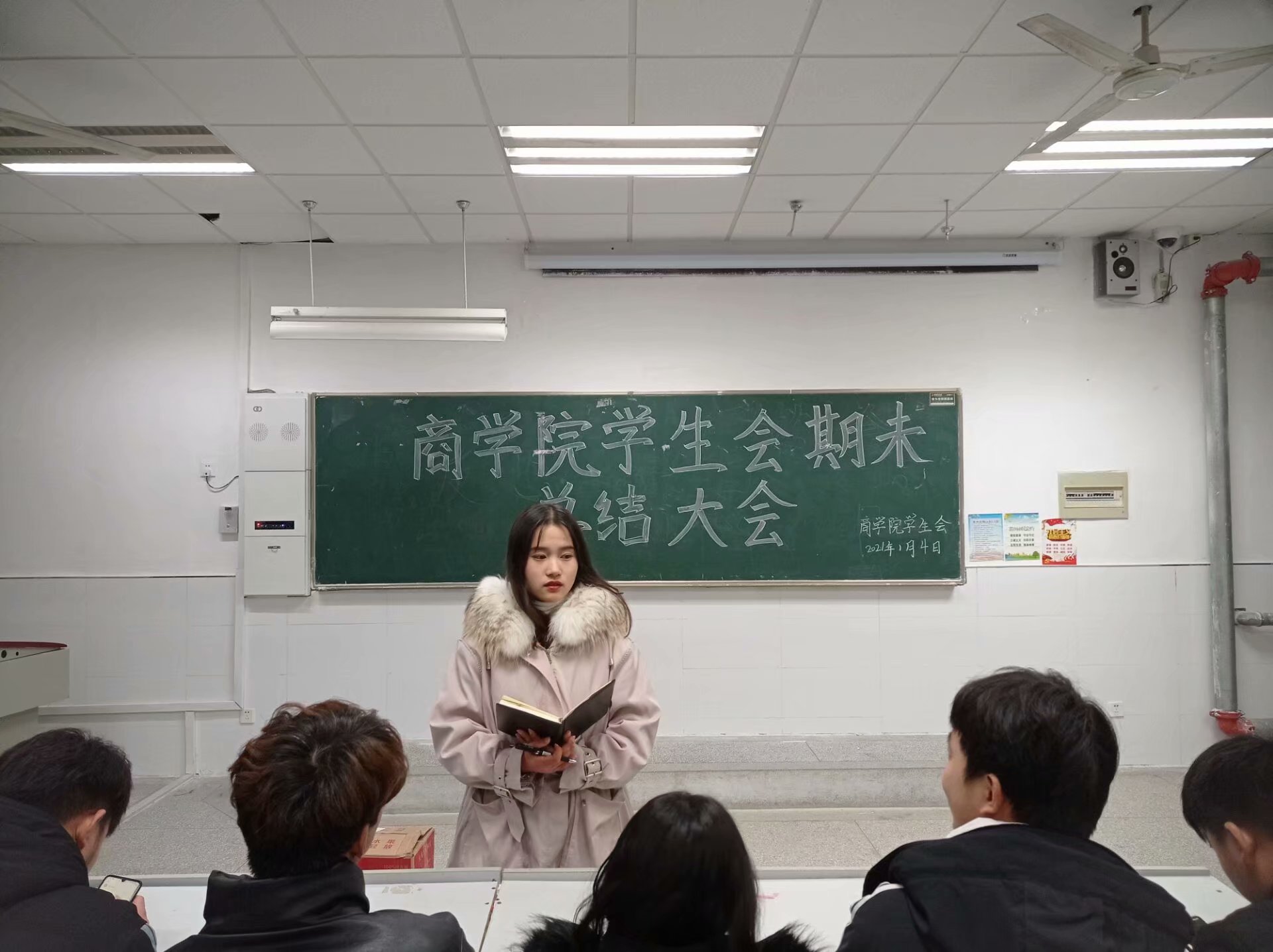 2021年1月4日, 商学院学生会在1119教室召开期末总结大会,对本学期的所有工作进行盘点和总结,学生会所有成员参加本次会议。