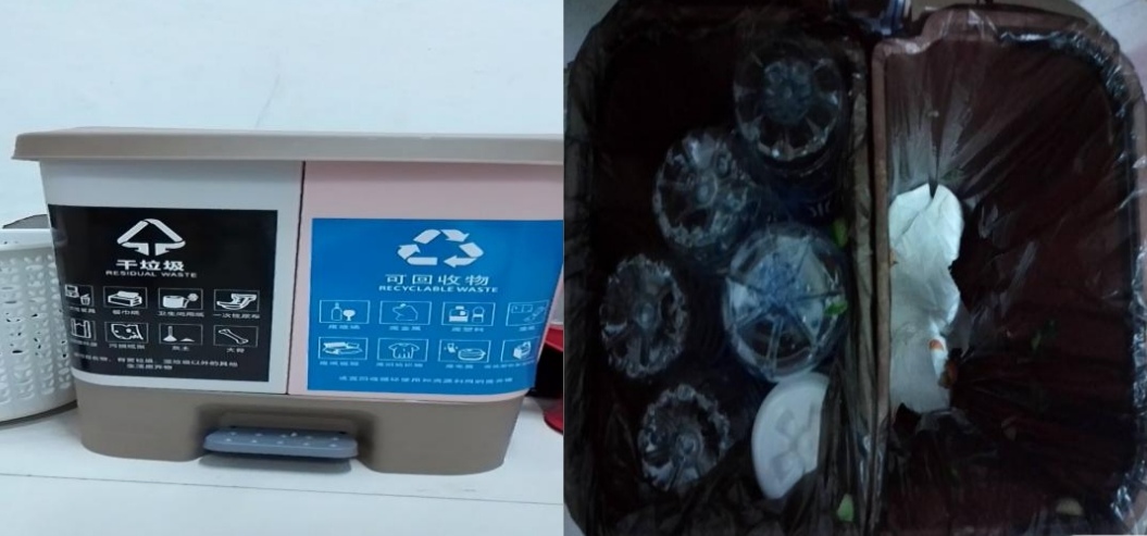 第二阶段:实践推广。辅导员李晓辕为同学宿舍配备了可分类投放的垃圾箱,引导和鼓励同学们在生活中践行垃圾分类做法。