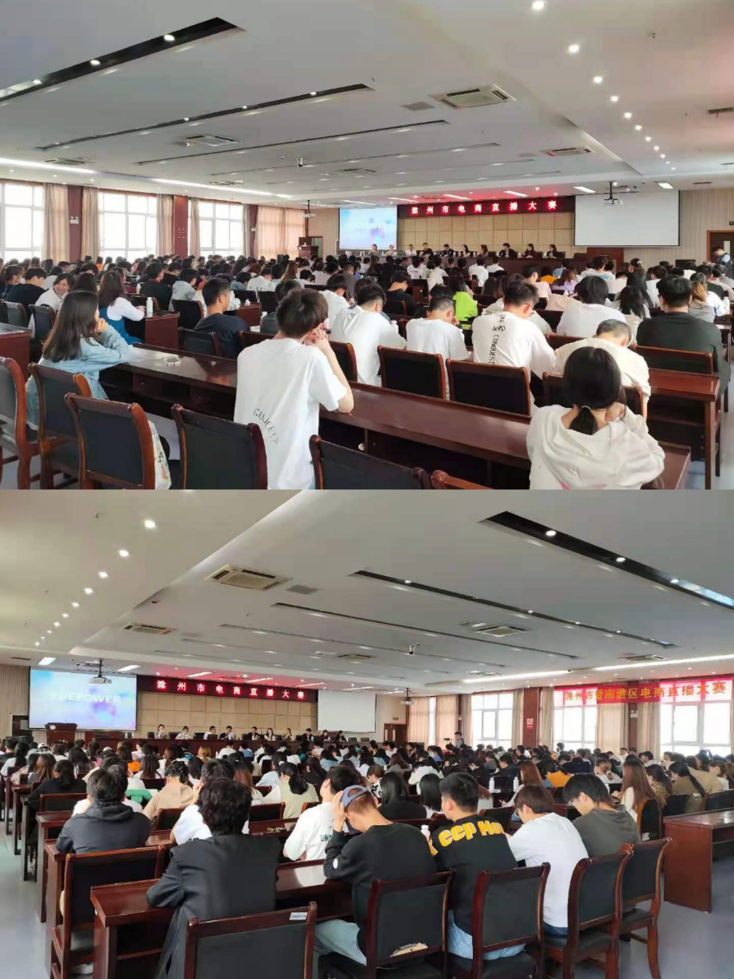 在专题宣讲中,滁州市电商直播领域优秀企业代表就电子商务进行了行业介绍以及行业分析,让大家对电商行业的新发展及以后的就业方向有了更深入的了解,并向同学们分享了电商行业的实践经验和实操技能,使同学们对参加电商直播大赛有了更清晰的认识,也让同学们对企业电商直播框架和现阶段电商直播的发展趋势有了进一步认知,开拓了眼界,丰富了知识。