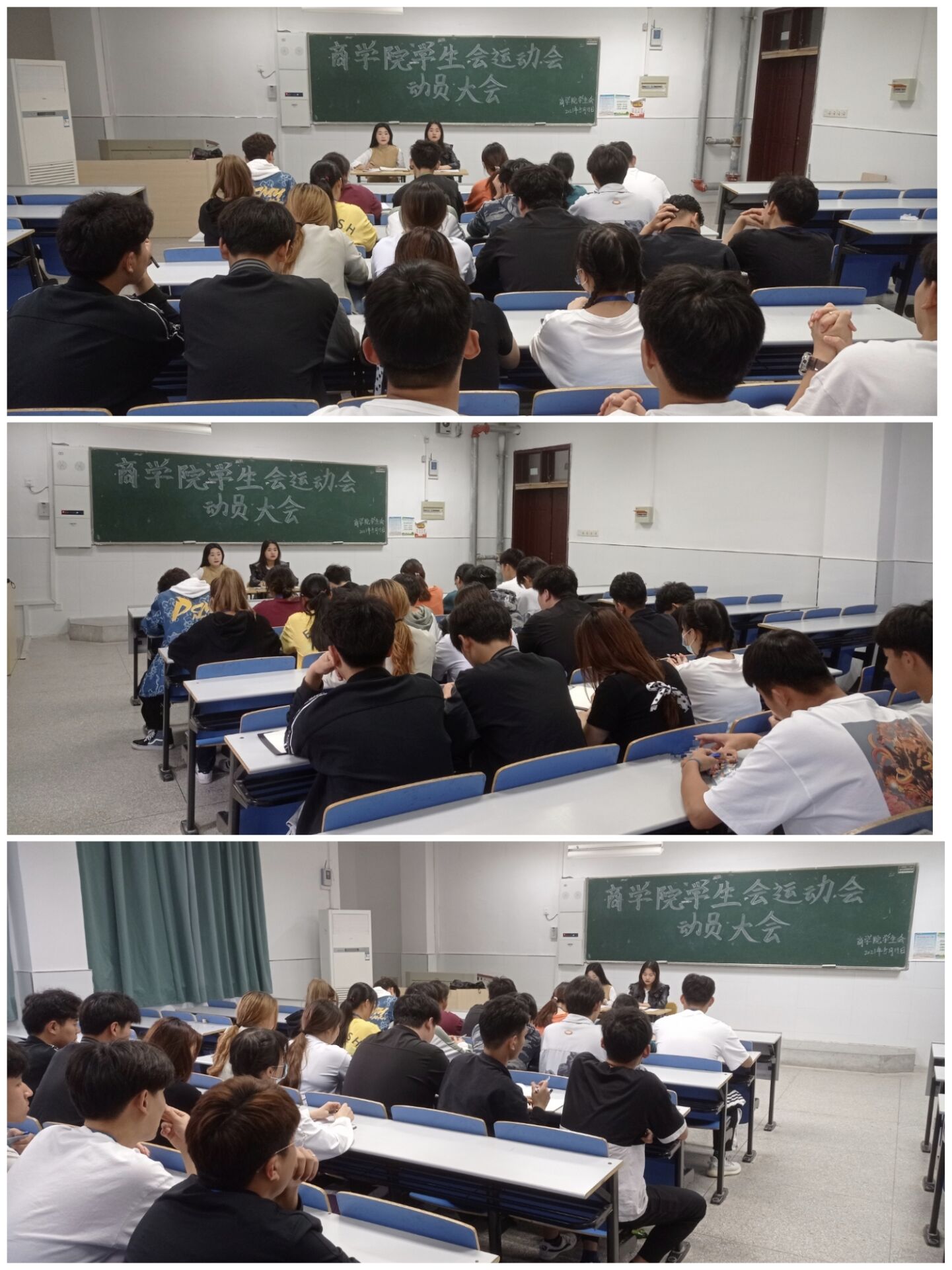 为了更好地迎接运动会的到来,展现学子们的风采,商学院学生会于5月19日中午在1119教室召开了“商学院运动会动员大会”,学生会全体人员参加此次会议。