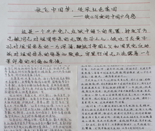 本次征文要求参赛同学运用不同的文体、写作风格来阐释和表达自己的爱国情感,需卷面整洁,字迹工整。自大赛开始就收到了来自商学院20、21级同学们积极投稿,收获相关稿件多达百余篇。同学们在文章中表达了对先辈们不怕牺牲、勇于拼搏精神的敬佩,以个人不同的视角阐述了心中对于中国梦的理解。同时也有不少同学表示要从自身做起,认真学习党史,不忘初心,砥砺传承先辈们无私奉献、奋斗不息的精神。最终通过初审,复审,终审三个环节的层层筛选,由宋婷同学获一等奖;张鑫月、赵伟两位同学获二等奖;盛素芳、王聪和徐永兰三位同学获三等奖。