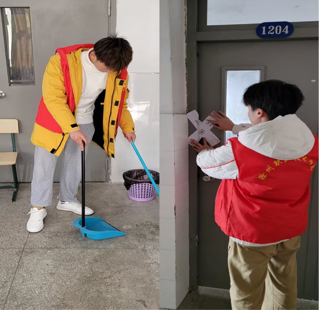 活动开始前由学生会主席庄福民进行工作布置,大一干事们对物品的摆放,桌椅、地面、门窗等地方的卫生,进行全面、彻底的打扫。打扫干净后,为确保假期间的安全性,大一干事们用封条将商学院所有的教室门窗都贴了起来,活动在大一干事们拍照留念声中迎来了尾声。在本次卫生大扫除活动中,大家各尽其职,认真站好寒假前的最后一班岗,共同装饰出整洁舒适的教室环境。