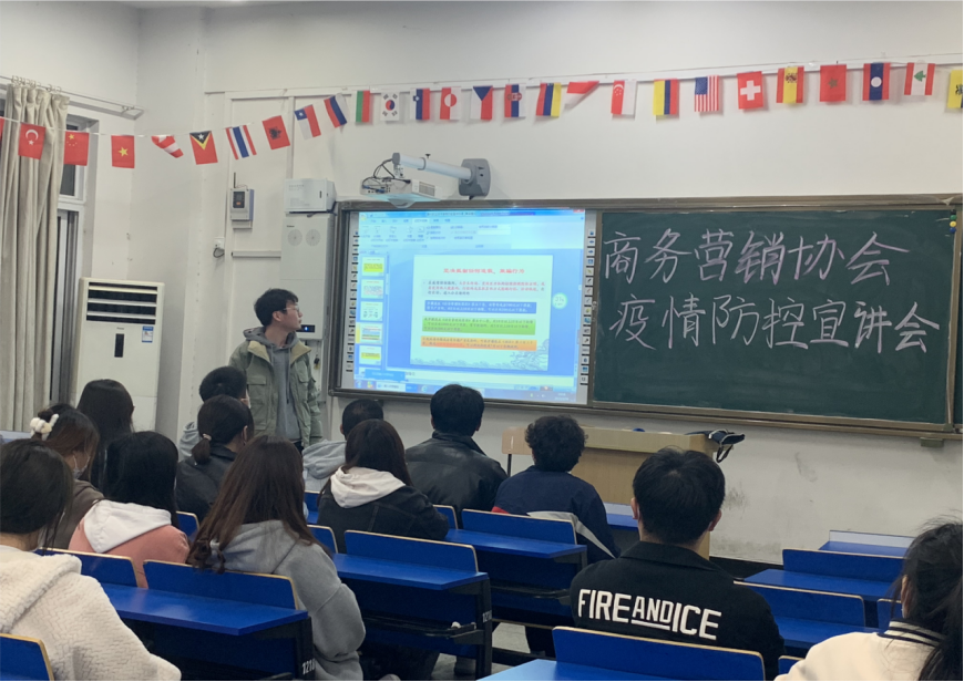 3月24日晚,商务营销协会在1218教室召开疫情防控专题宣讲会,宣讲会由协会指导老师徐巍主讲。协会会长和各位会员参加了此次会议。
