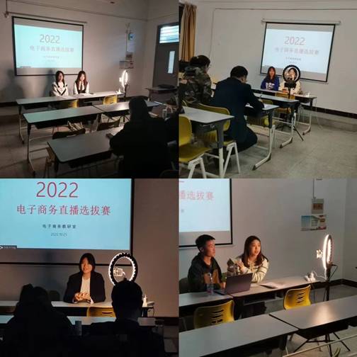 2022年10月25日,商学院电子商务教研室在1225教室成功举办了电子商务直播选拔赛。21级22级电子商务专业学生踊跃报名参加本次选拔赛。