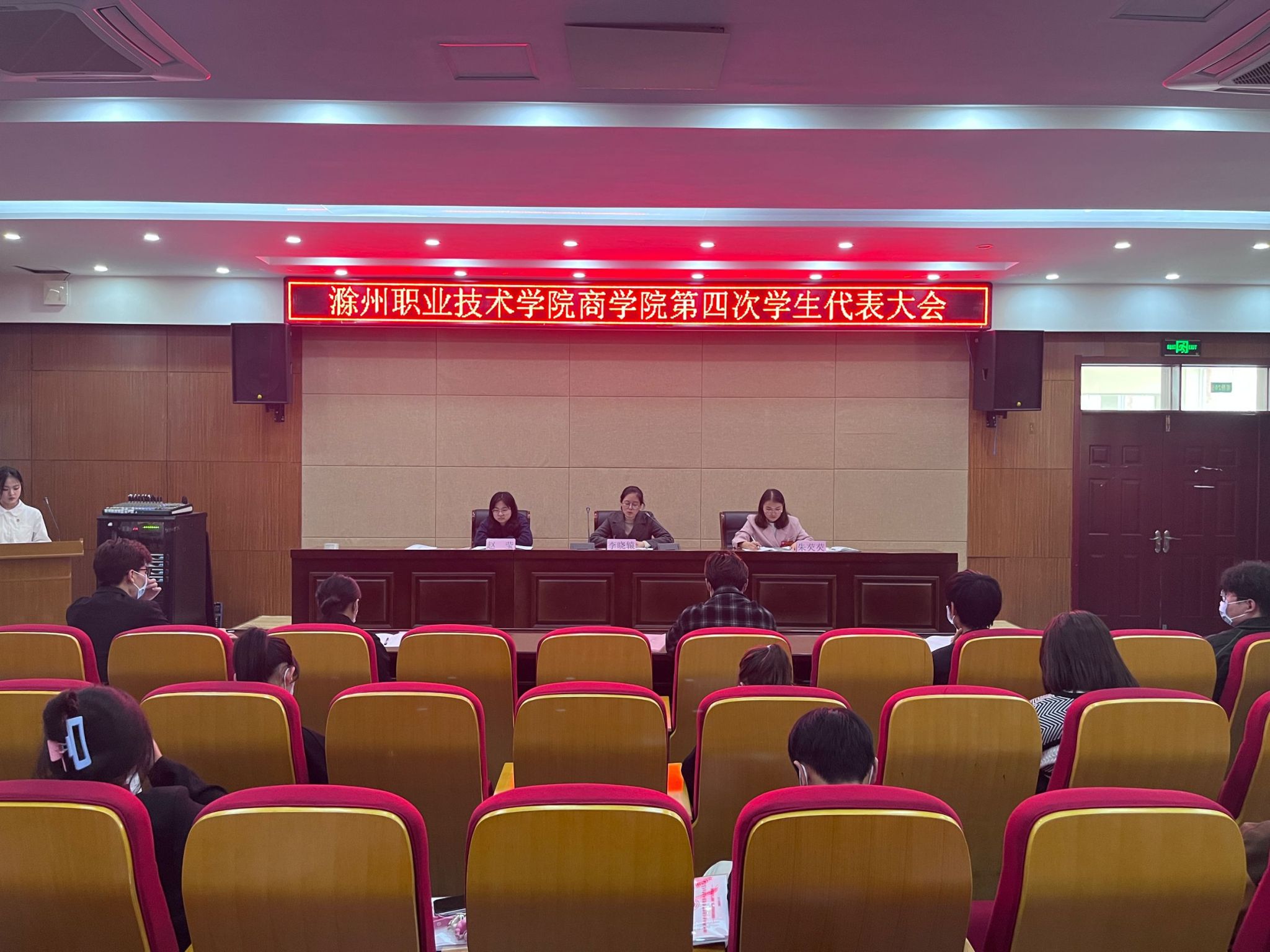 商学院于2022年12月1日下午14: 00在南阶205教室召开了awc777万象城娱乐官网商学院第四次学生代表大会。院党总支副书记李晓辕、院团总支负责人朱芡芡、学生支部书记赵莹以及70名学生代表参加此次会议。