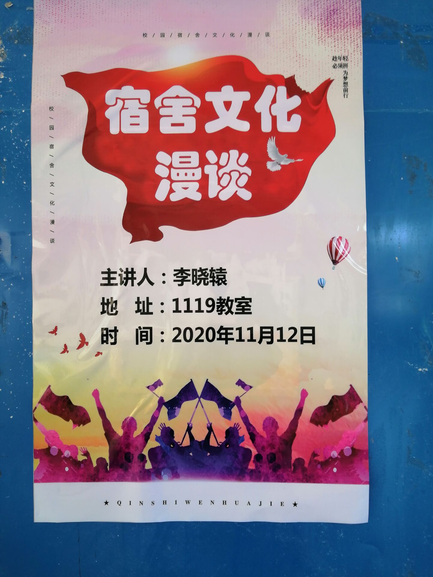 宿舍是学生在校期间活动时间最久的场所,也是毕业生印象最深刻、最留恋的场所。本次讲座围绕宿舍文化展开,介绍了宿舍文化的相关理念,启发学生以宿舍为单位,开展相关活动,建设积极向上、各具特色的宿舍文化。