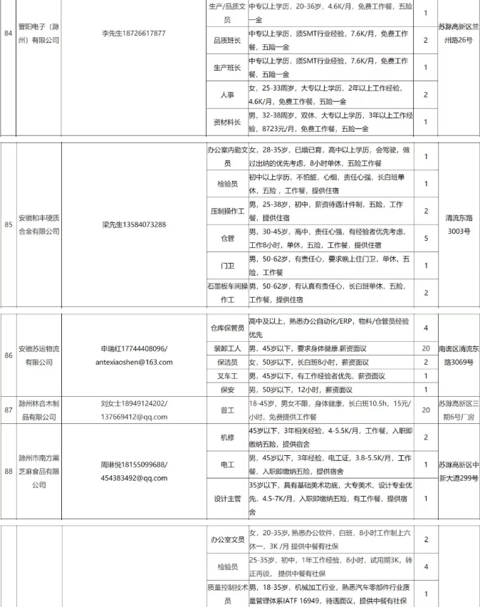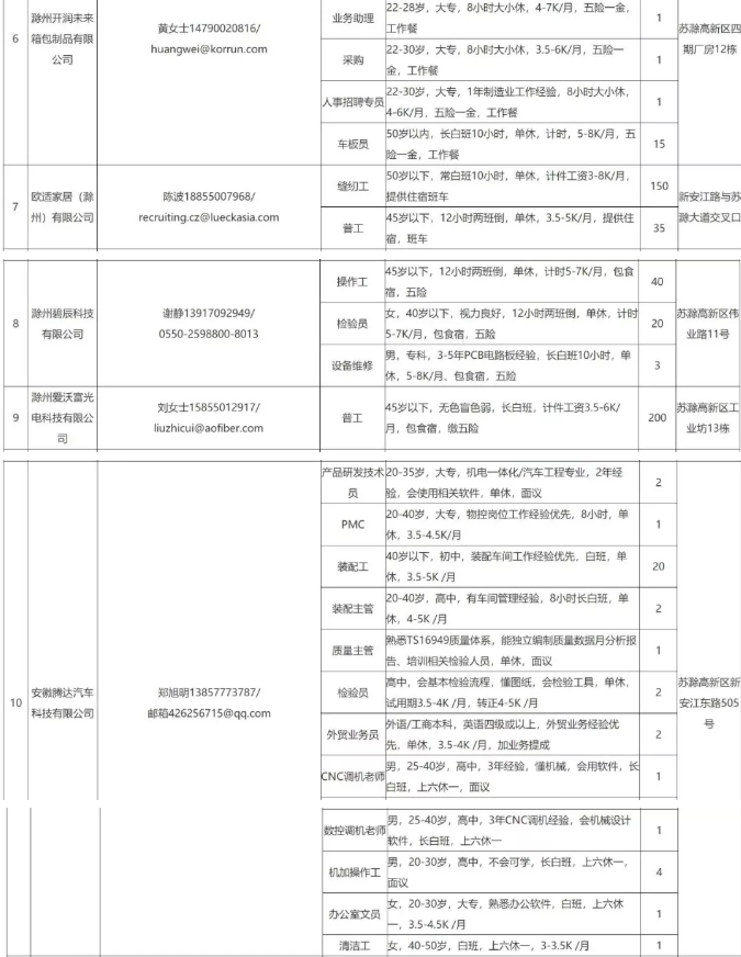 中新苏滁高新区 2020年一季度百家企业五千岗位招聘需求表