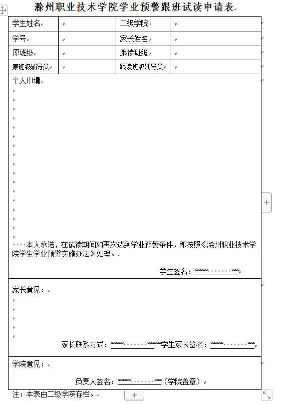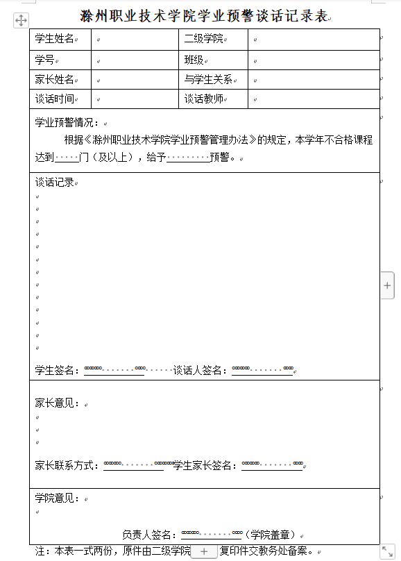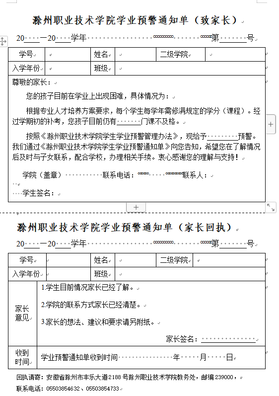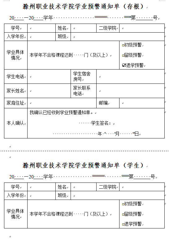 学生学业预警相关表格